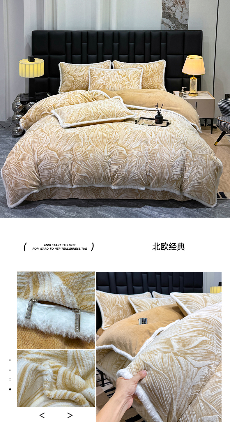(总)鹿辉家居(原吉欧力) 2025新款牛奶绒立体雕花兔毛绒包边单品被套