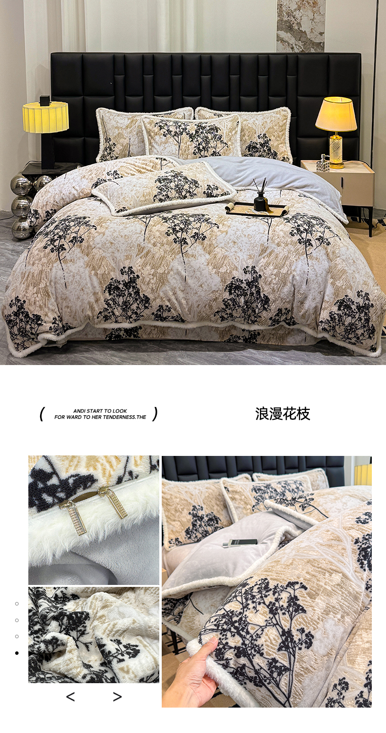 (总)鹿辉家居(原吉欧力) 2025新款牛奶绒8.5斤立体雕花兔毛绒包边四件套,香榭落叶,北欧经典,彩带飘飘,蝶恋花香,繁花朵朵,格韵经典,古韵花香,国色天香,花枝飞舞,画意枝头,浪漫花枝,墨花如梦,暖意浓浓,浅灰叶梦,水墨玫瑰,碎花漫语,叶仲花,郁金香紫,云中小兔,仲夏浪漫