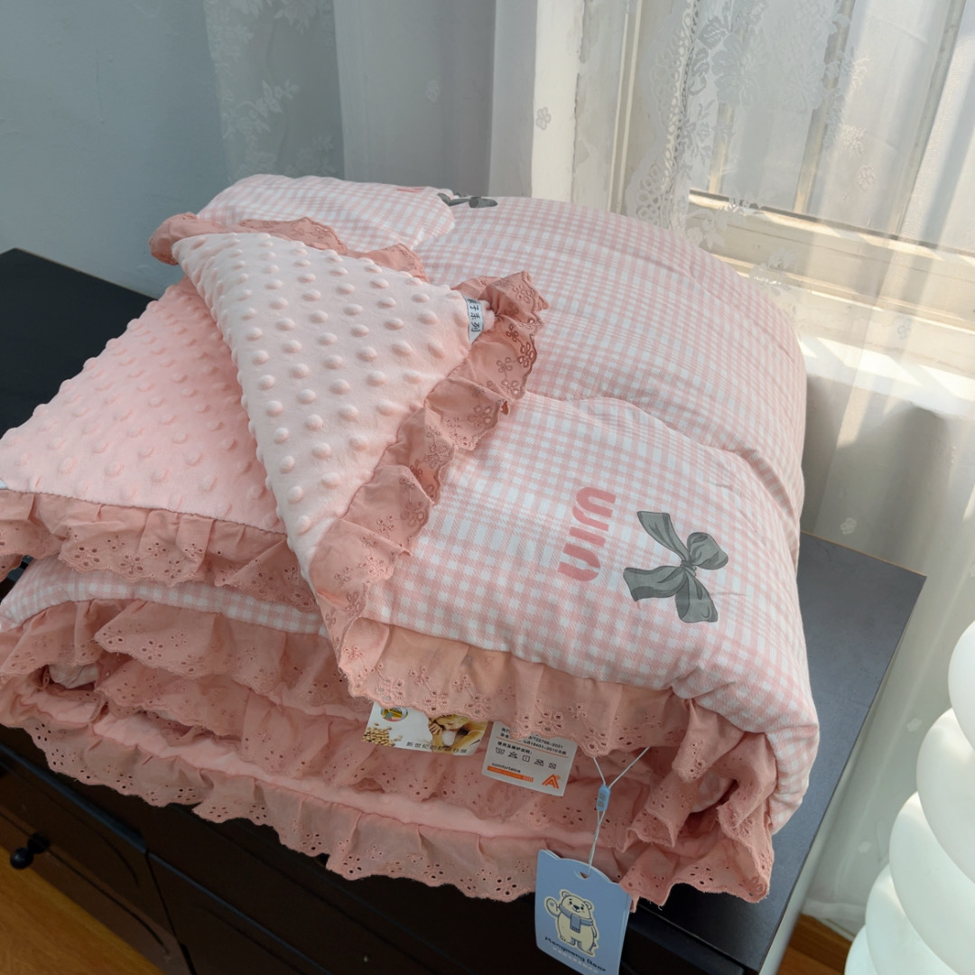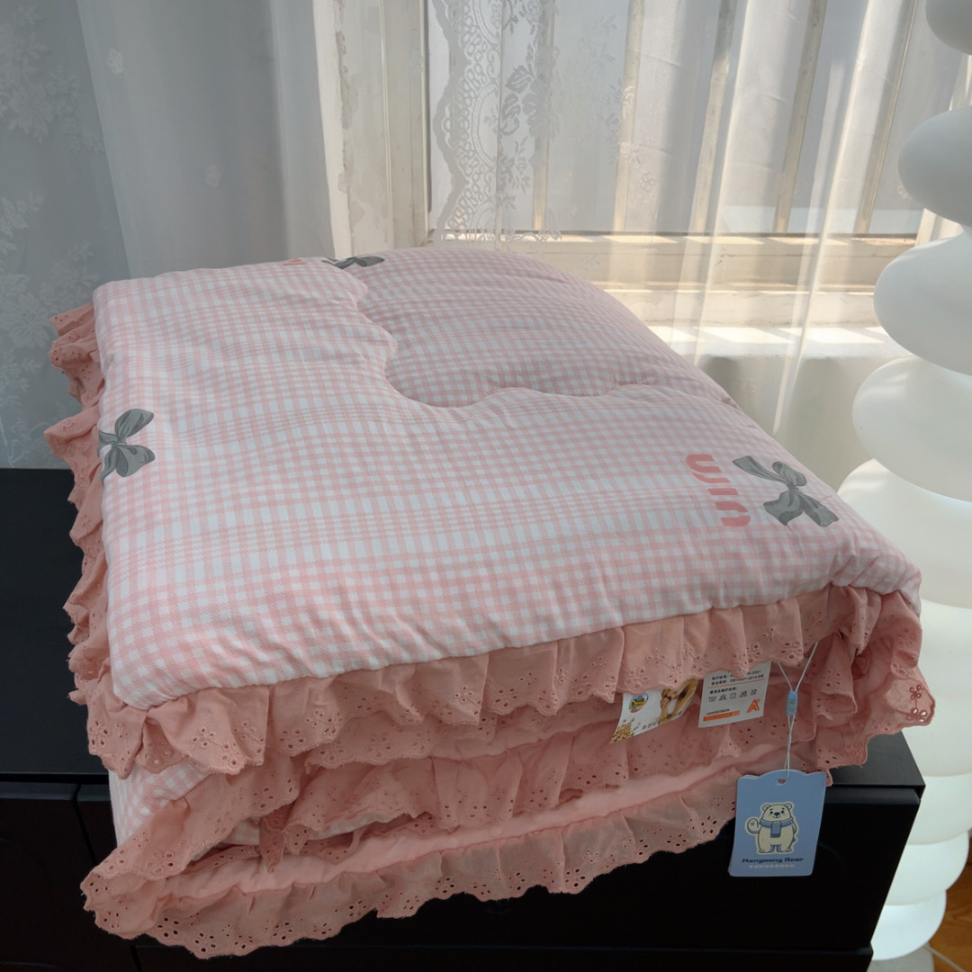 商品名称:暖居 2025新款纯棉花边款春秋豆豆被四季通用 蝴蝶结 粉