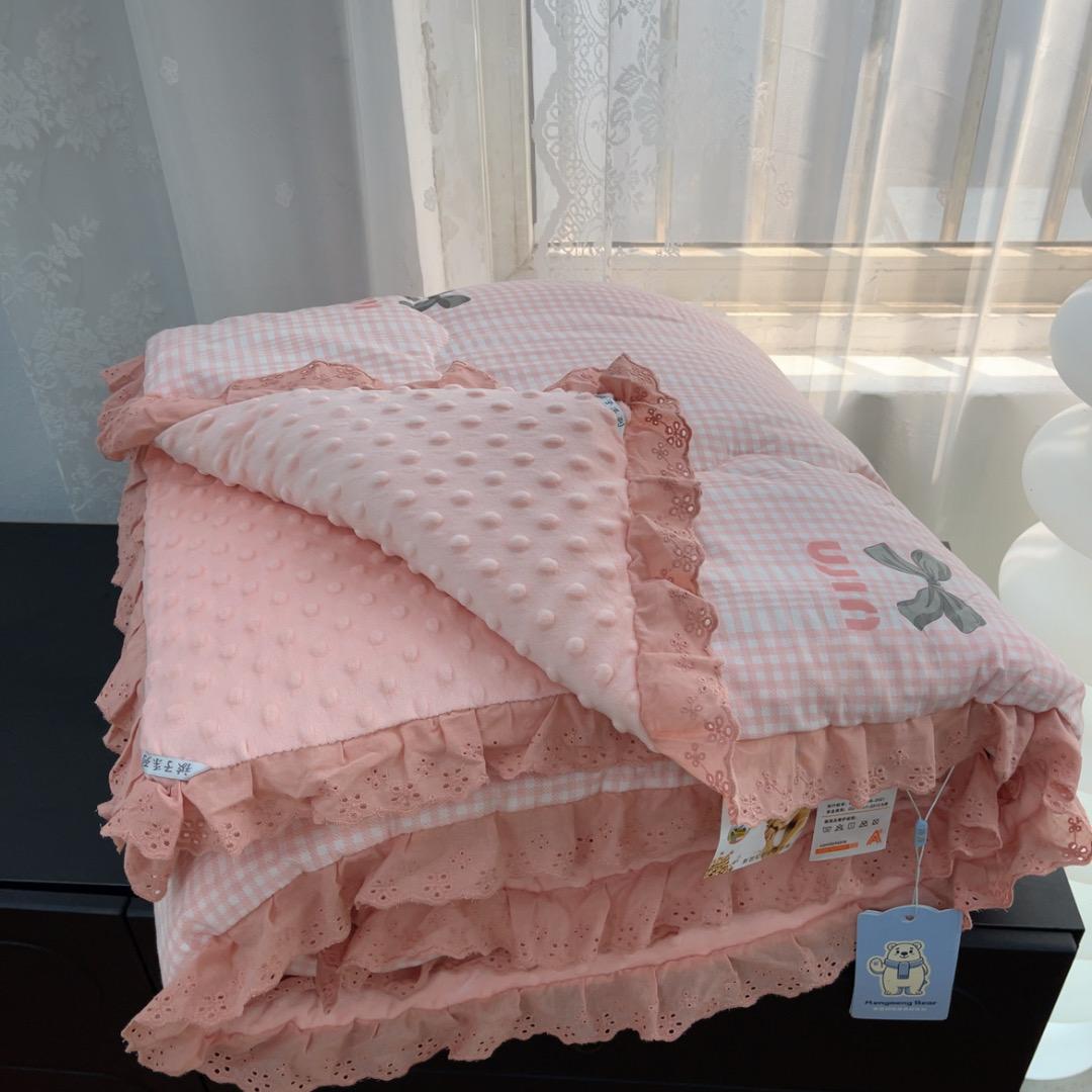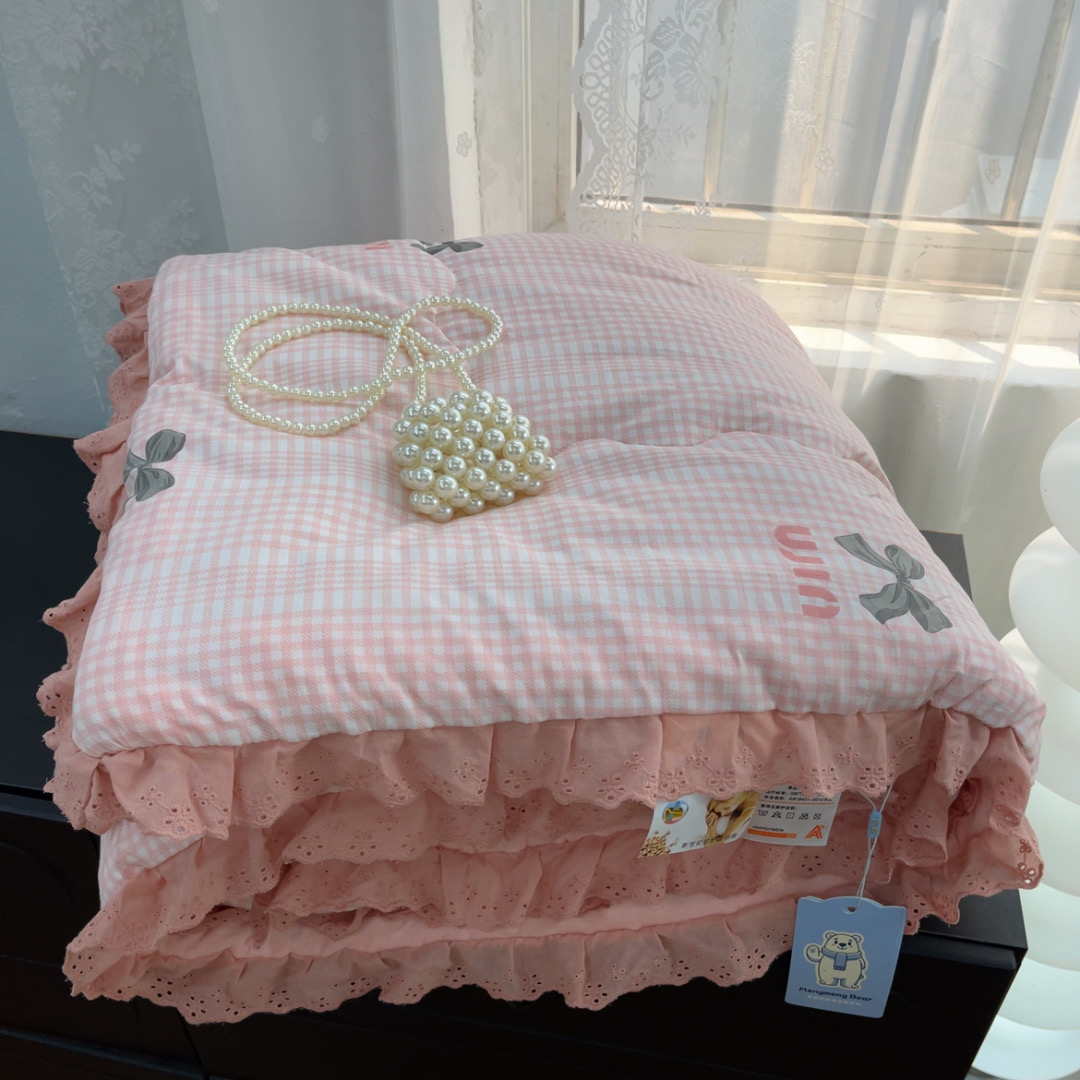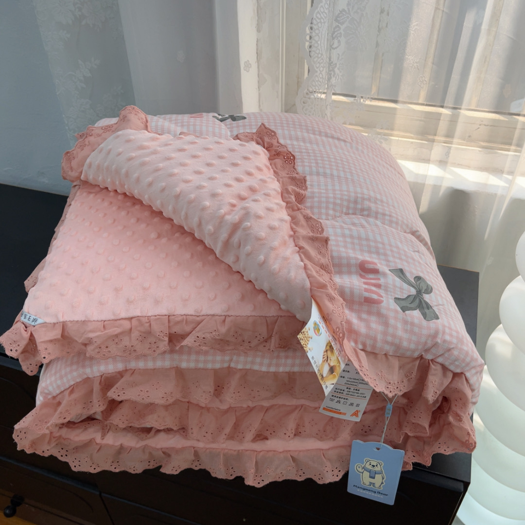 暖居 2025新款纯棉花边款春秋豆豆被四季通用 蝴蝶结 粉