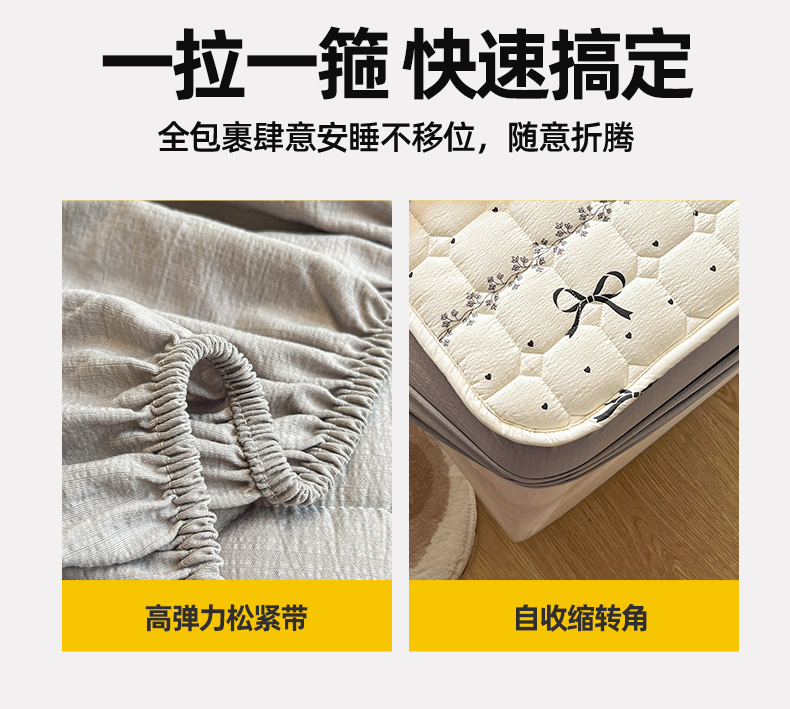 (总)布卢姆床垫 2025新款A类皱皱纱印花夹棉床笠
