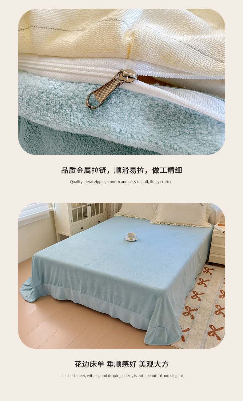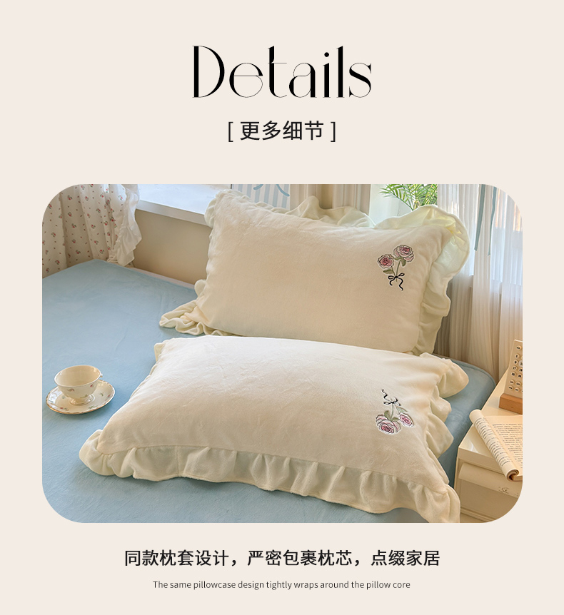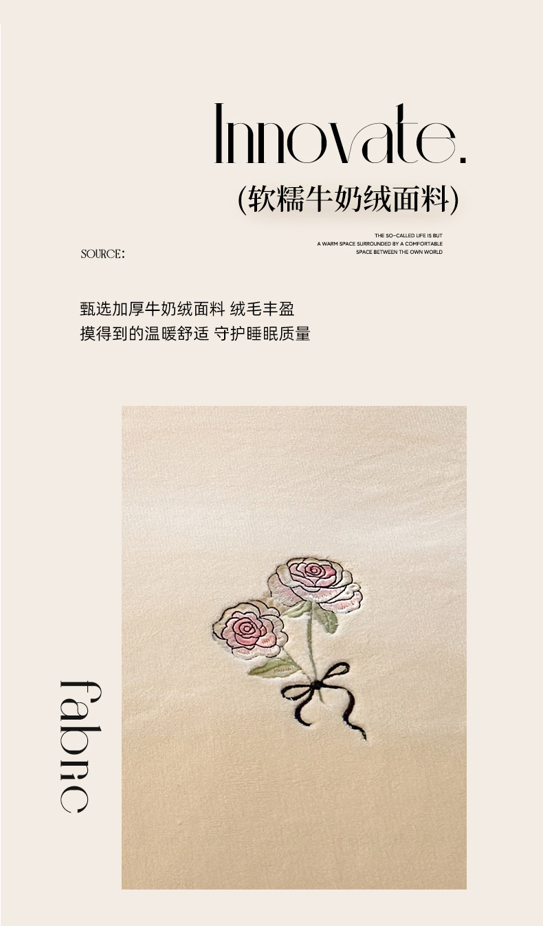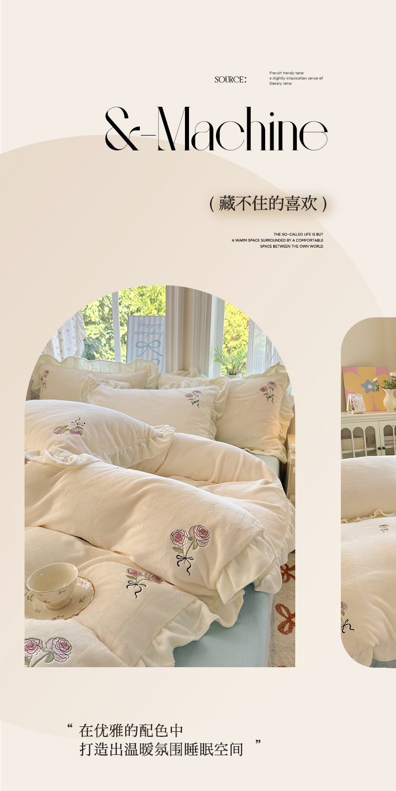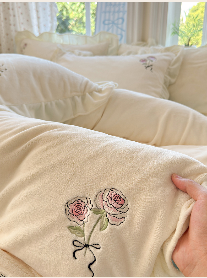 娜娜 2025新款法式花边刺绣牛奶绒四件套 云间玫瑰白+繁星蓝