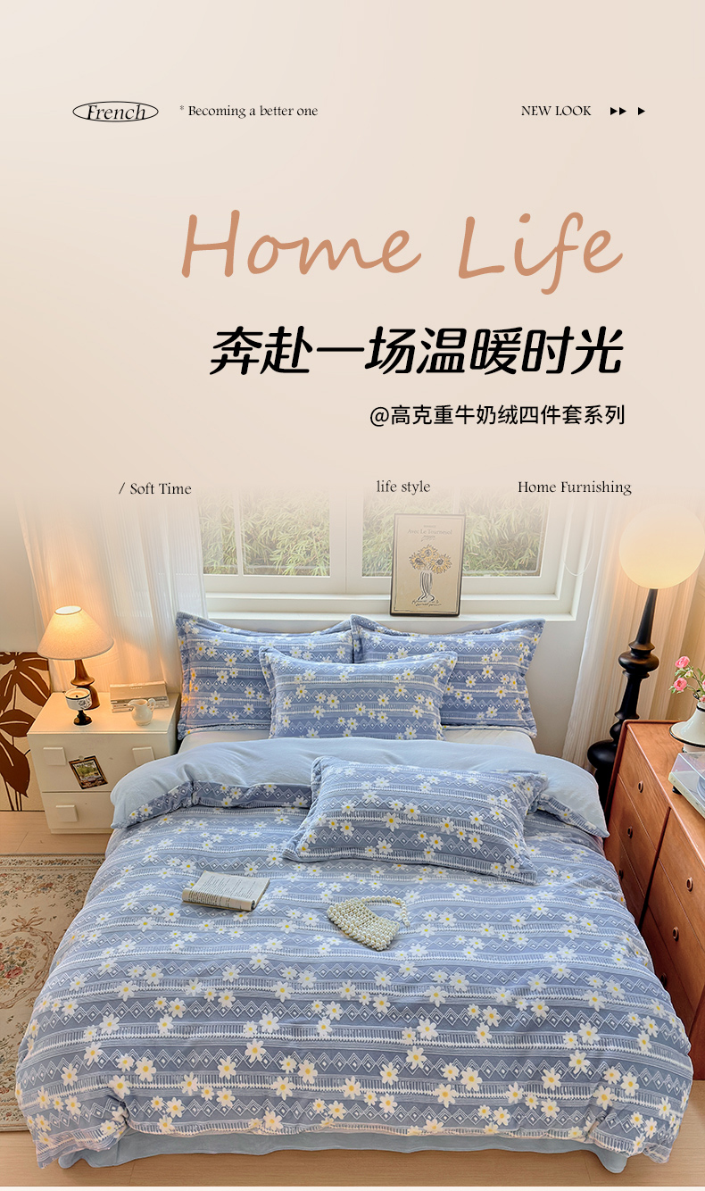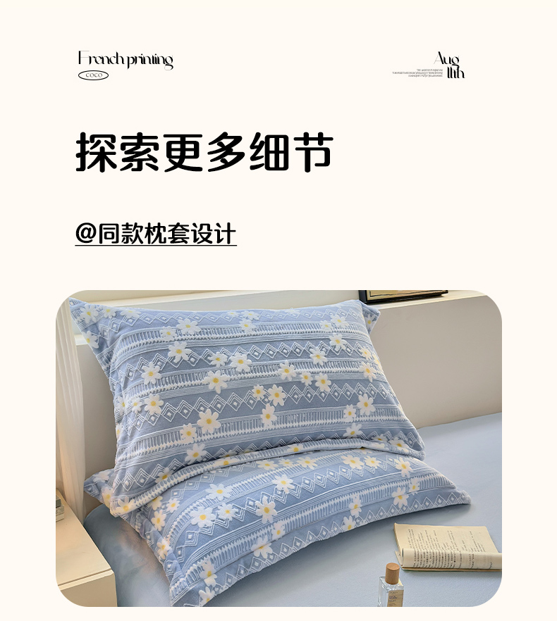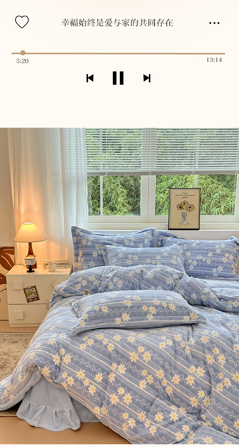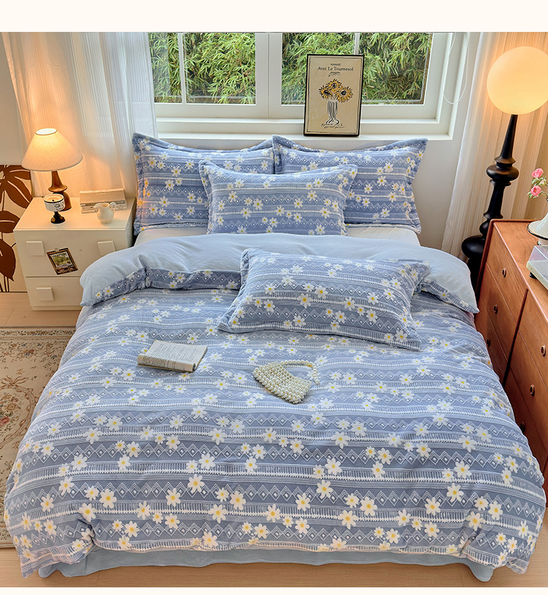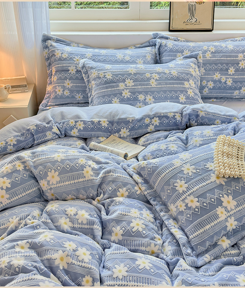 商品名称:娜娜 2025新款高克重牛奶绒百花齐放系列四件套 百花齐放-天空蓝