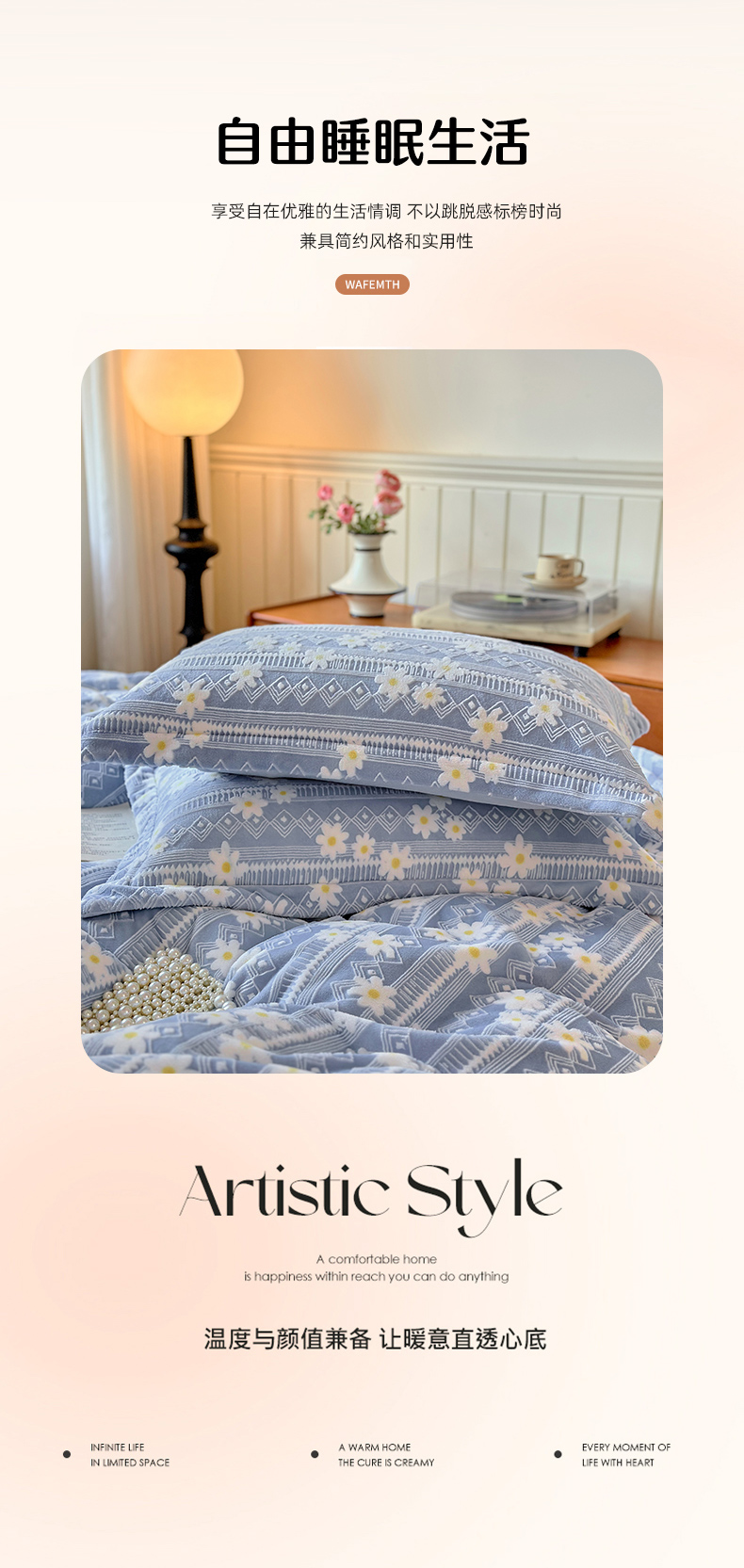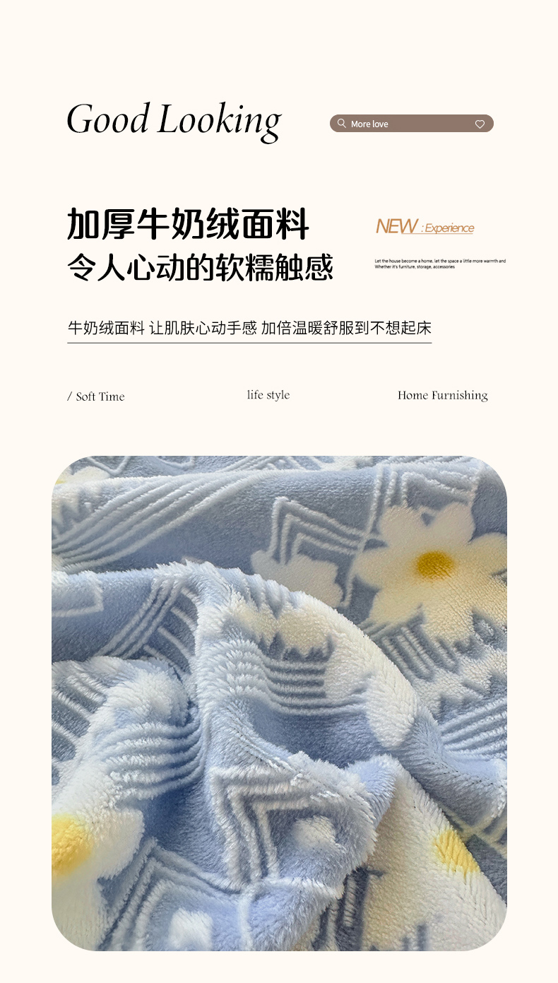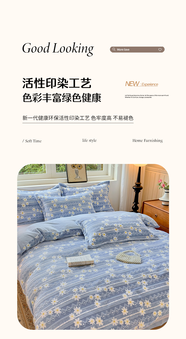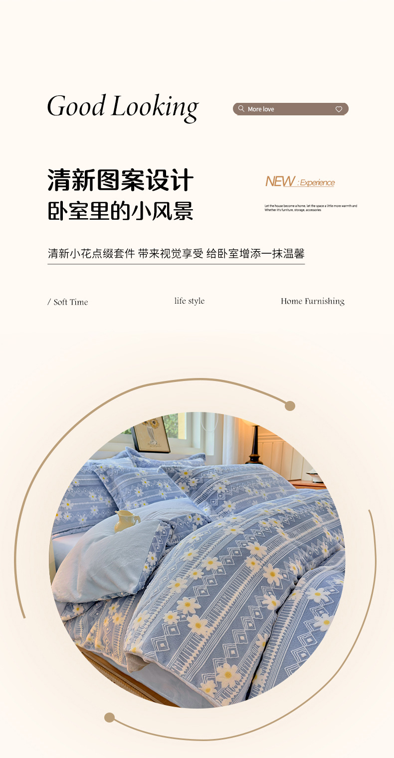 商品名称:娜娜 2025新款高克重牛奶绒百花齐放系列四件套 百花齐放-天空蓝