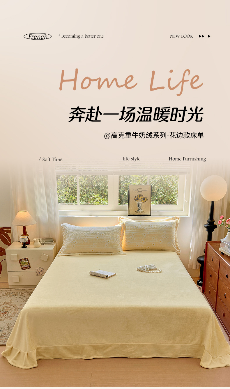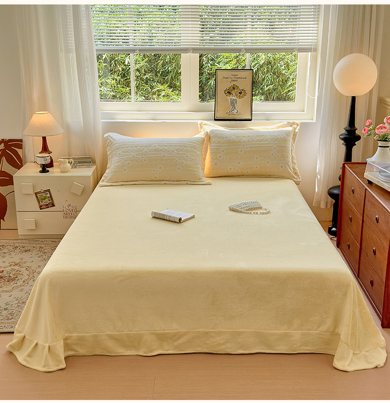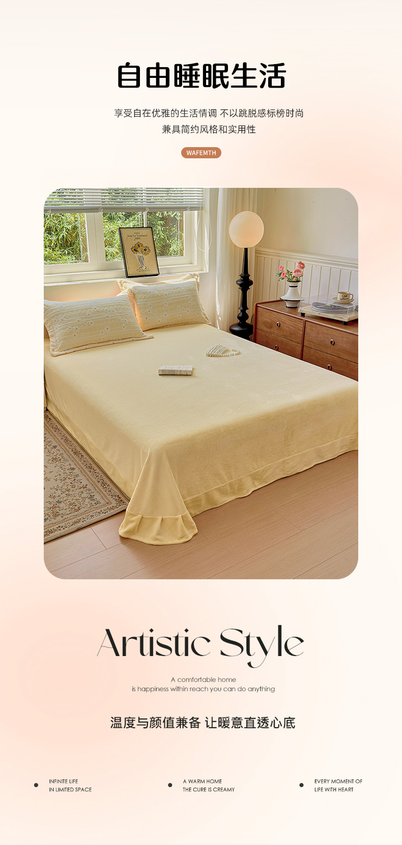娜娜 2025新款高克重牛奶绒百花齐放系列单品床单 奶黄