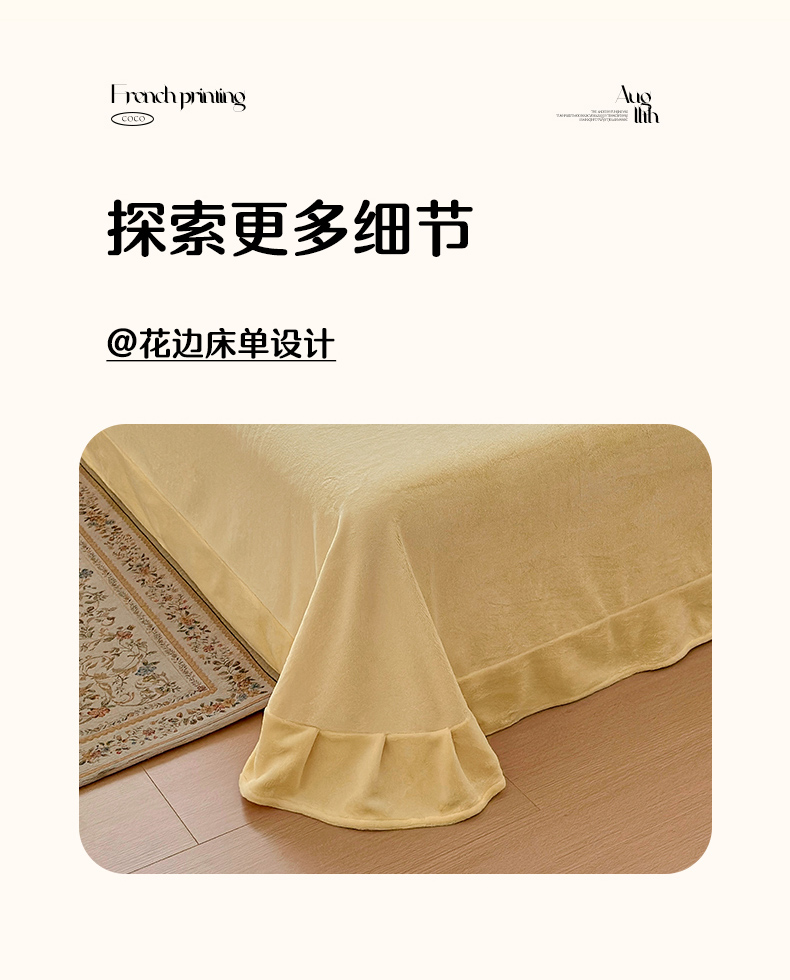 商品名称:娜娜 2025新款高克重牛奶绒百花齐放系列单品床单 奶黄
