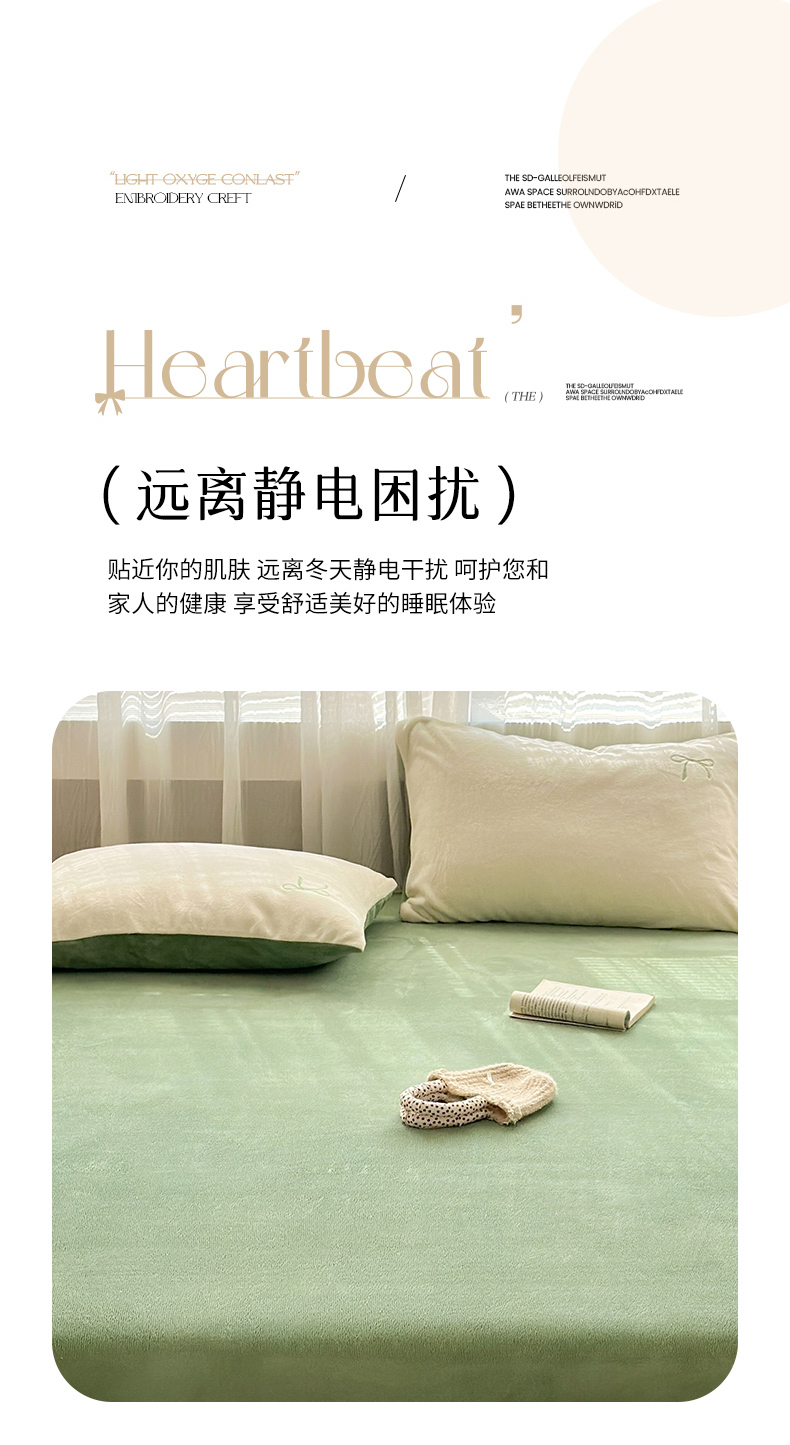 商品名称:娜娜 2025新款高克重牛奶绒同心结系列单品床单 牛奶绒床单-草绿