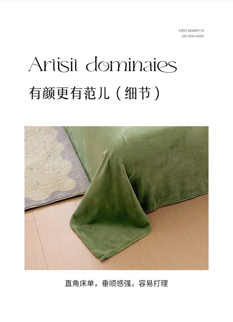 娜娜 2025新款高克重牛奶绒同心结系列单品床单 牛奶绒床单-草绿