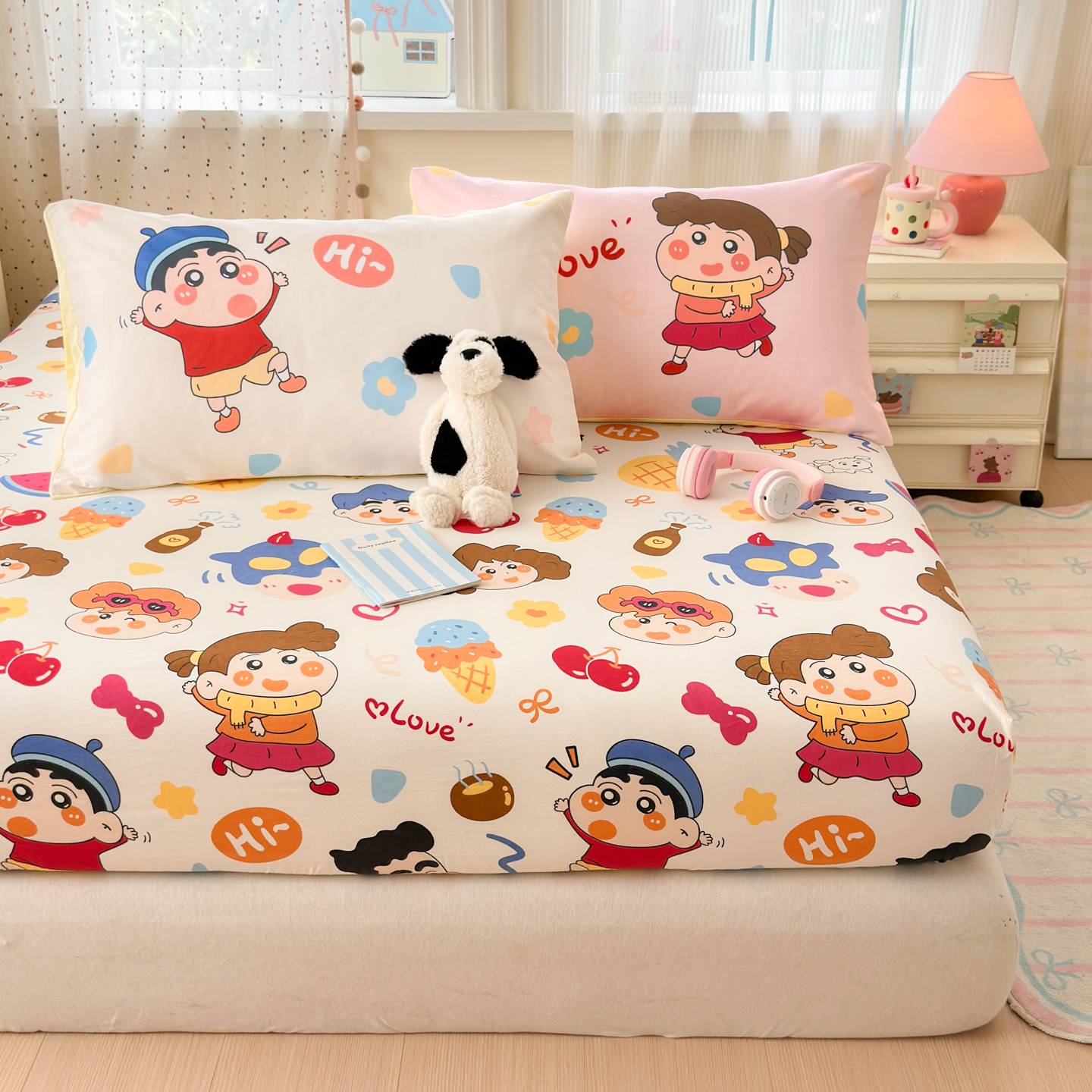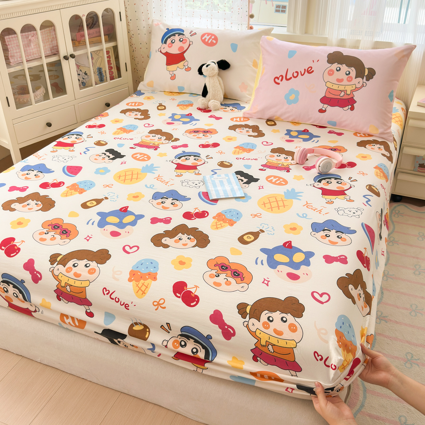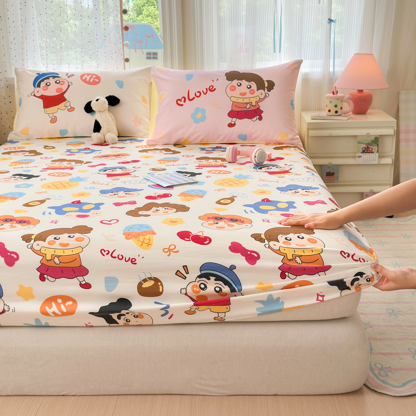 一霖家纺 2025新款云朵棉小清新印花床笠系列 单床笠-新新与葵葵