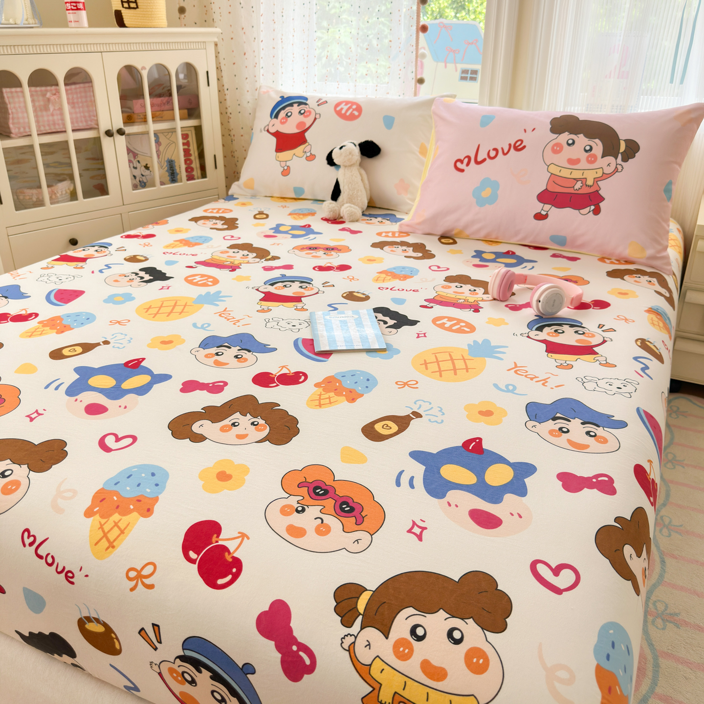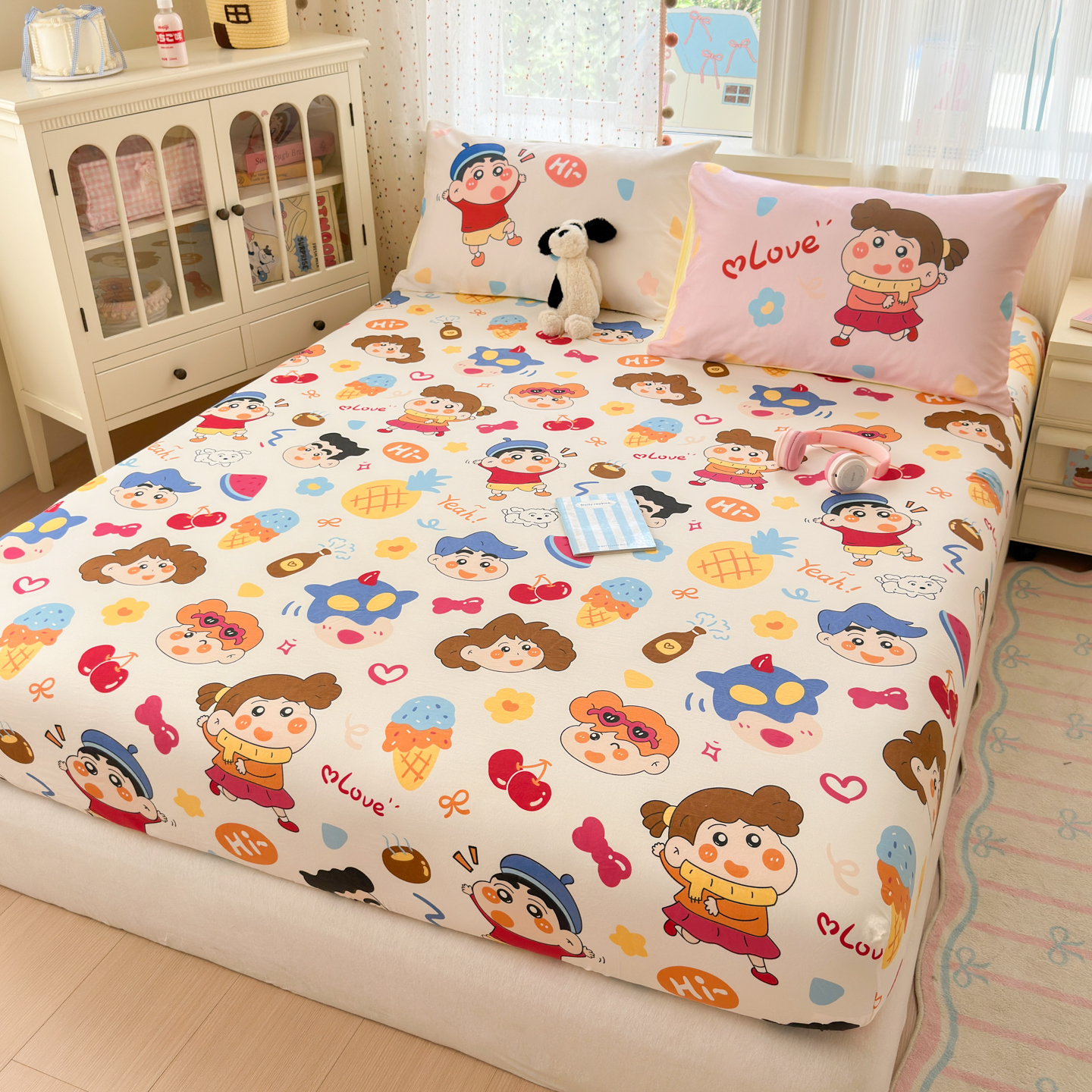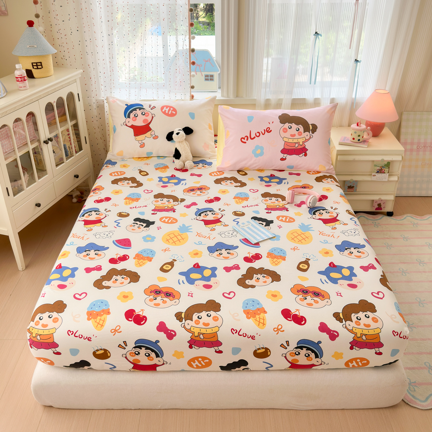 一霖家纺 2025新款云朵棉小清新印花床笠系列 单床笠-新新与葵葵