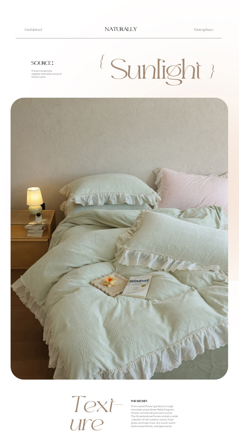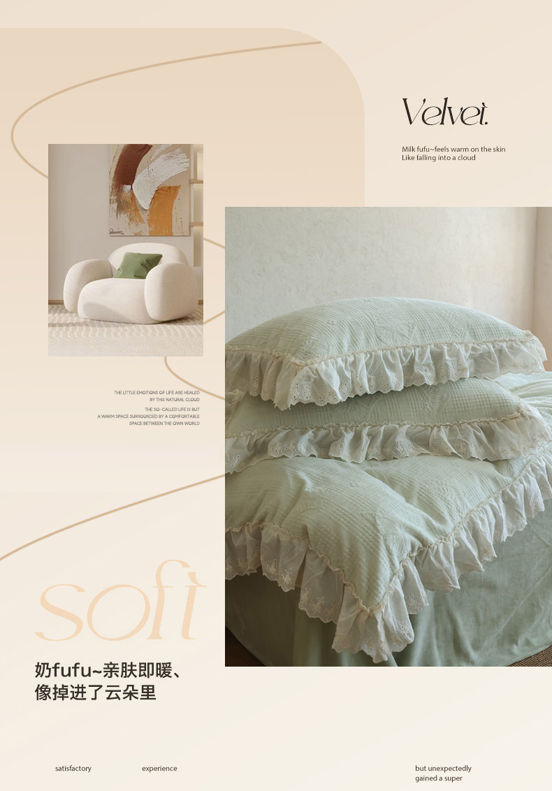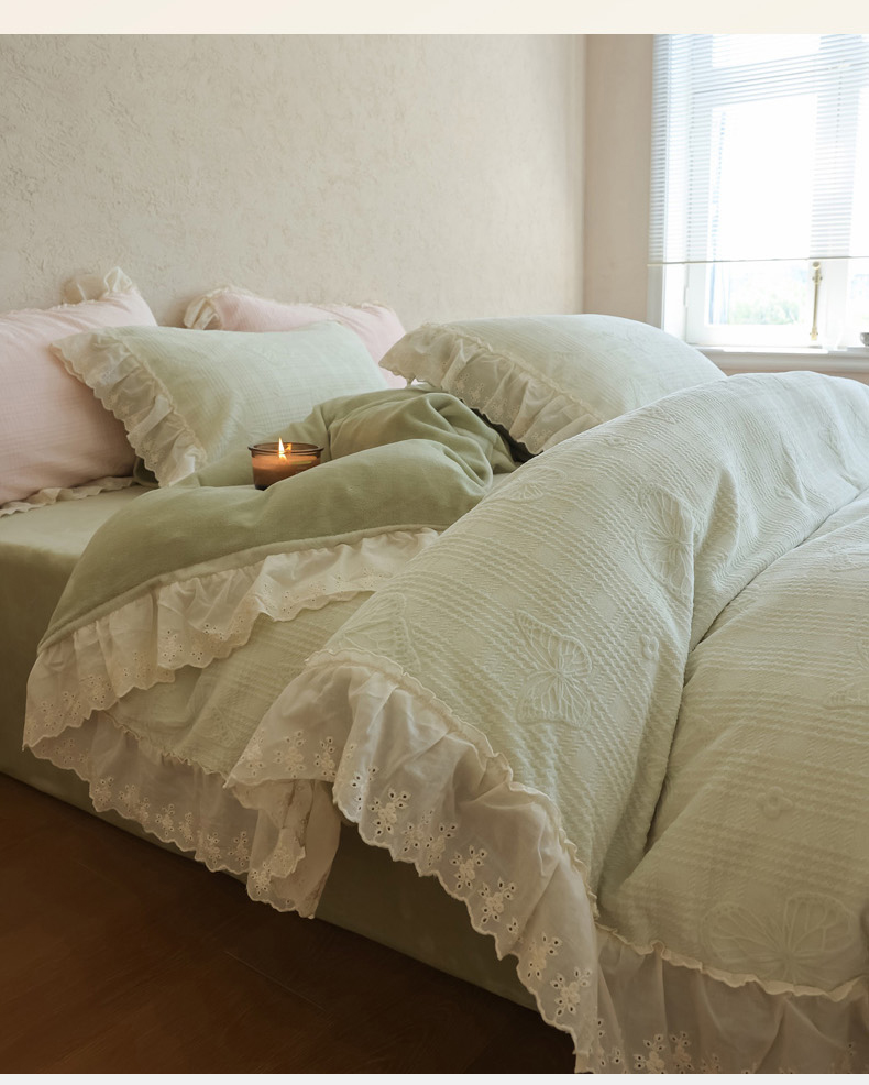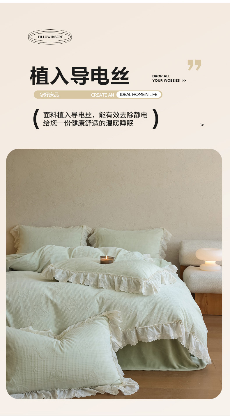 万盛家纺 2025新款韩版牛奶绒花边四件套-翩翩蝴蝶 翩翩蝴蝶 绿色