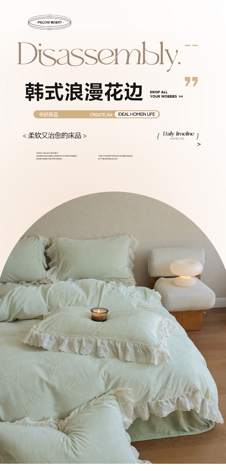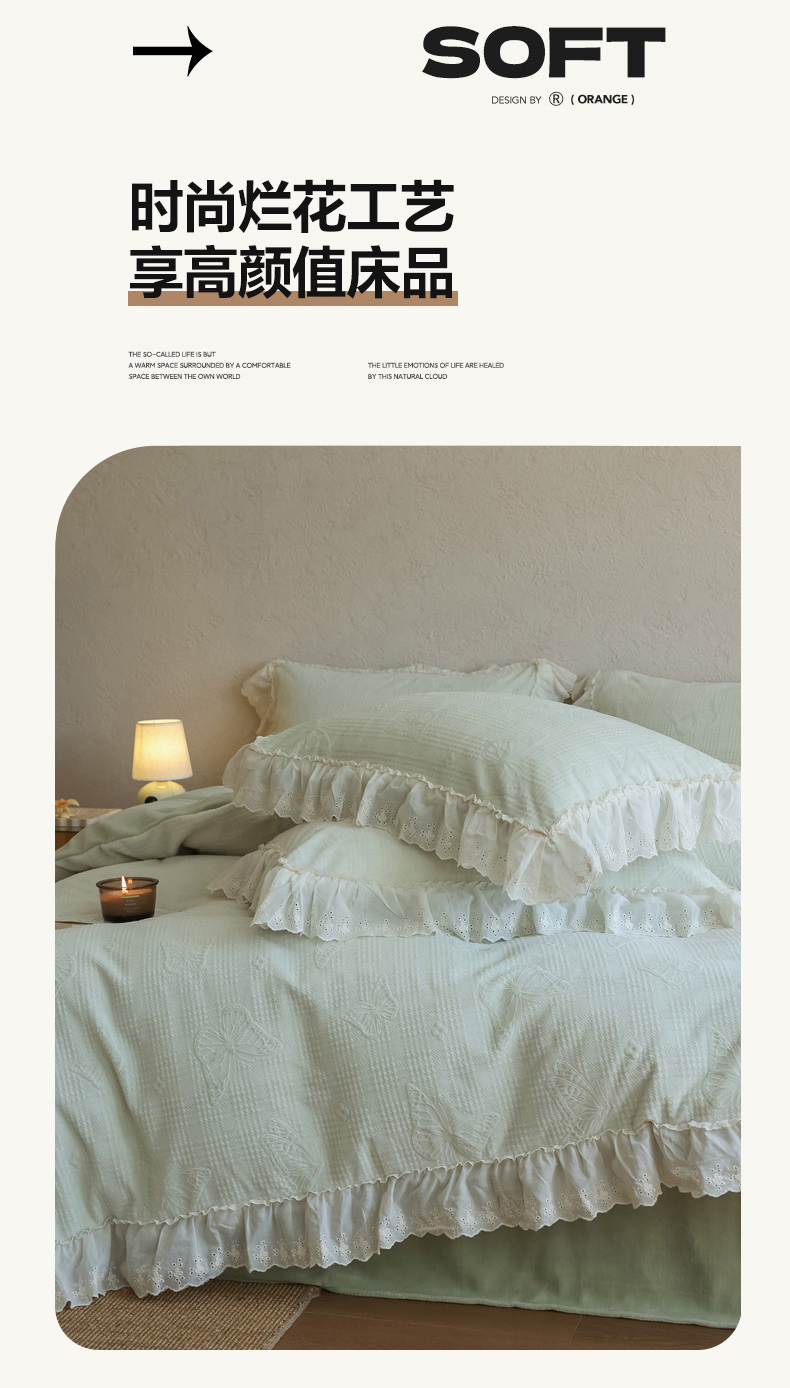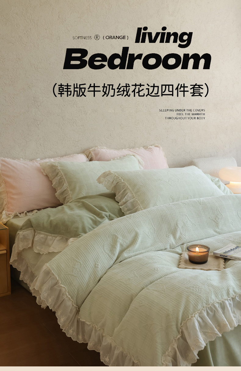 商品名称:万盛家纺 2025新款韩版牛奶绒花边四件套-翩翩蝴蝶 翩翩蝴蝶 绿色