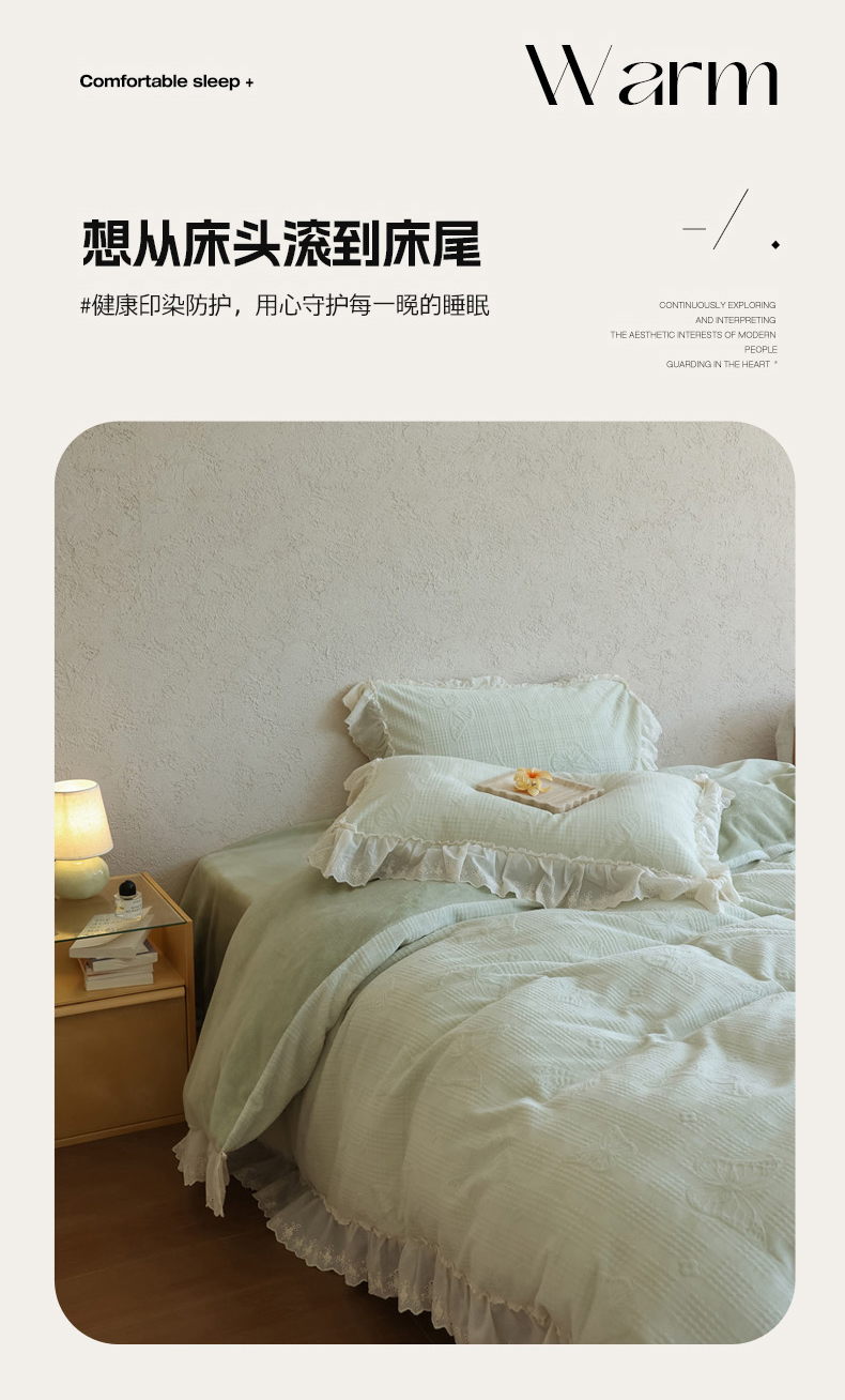 (总)万盛家纺 2025新款速暖绒保暖速干四件套,淡彩绿—奶油咖,粉玉—奶油咖,克洛尔兰—深空灰,梦幻蓝—烟灰,奶油咖—烟灰,深咖—奶油咖,烟灰—克洛尔兰