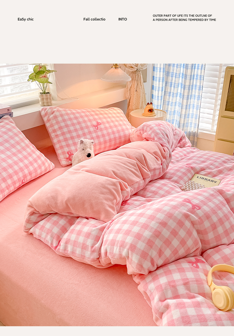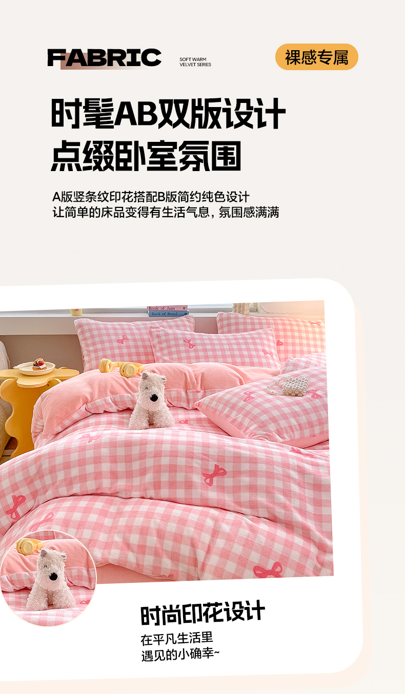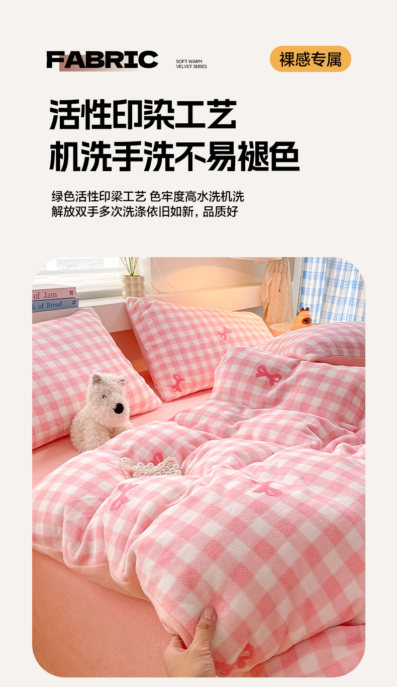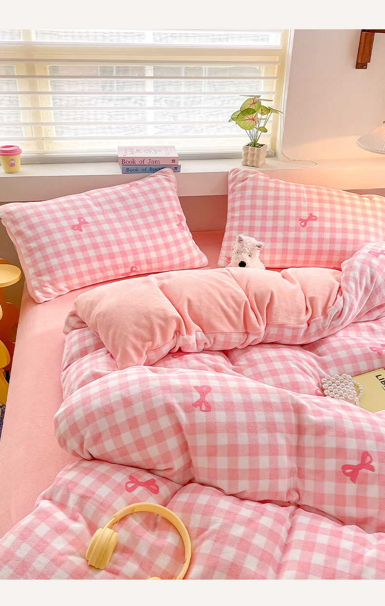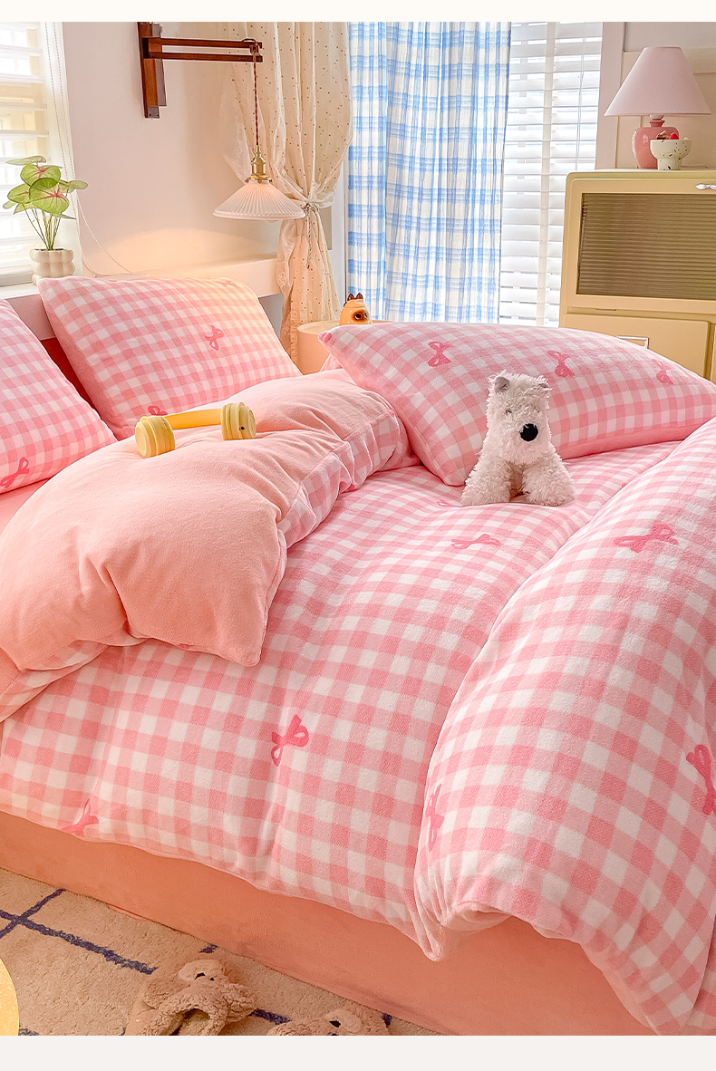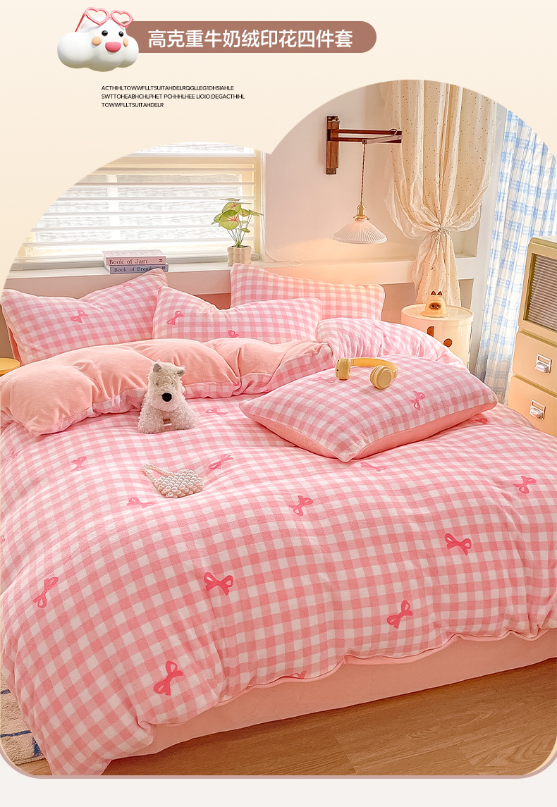 当前位置: 91家纺网 > 商品网购 > 床品套件 > 四件套 > 牛奶绒四件套 > 雅居纺家纺 2025新款高克重牛奶绒印花四件套 蝴蝶结-粉