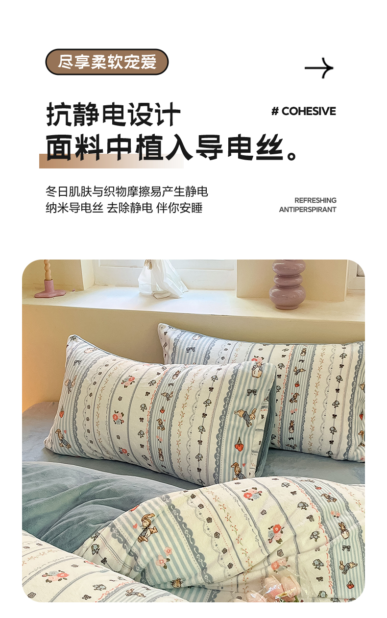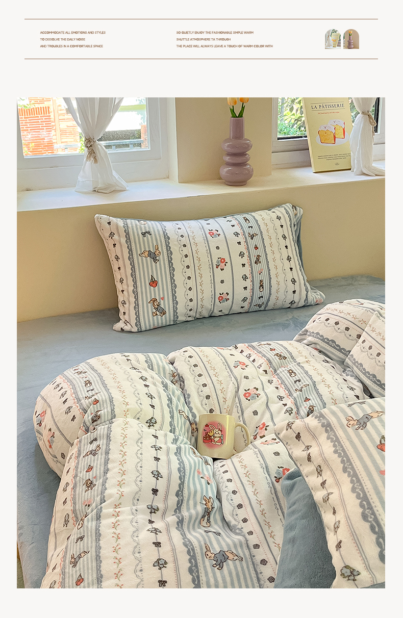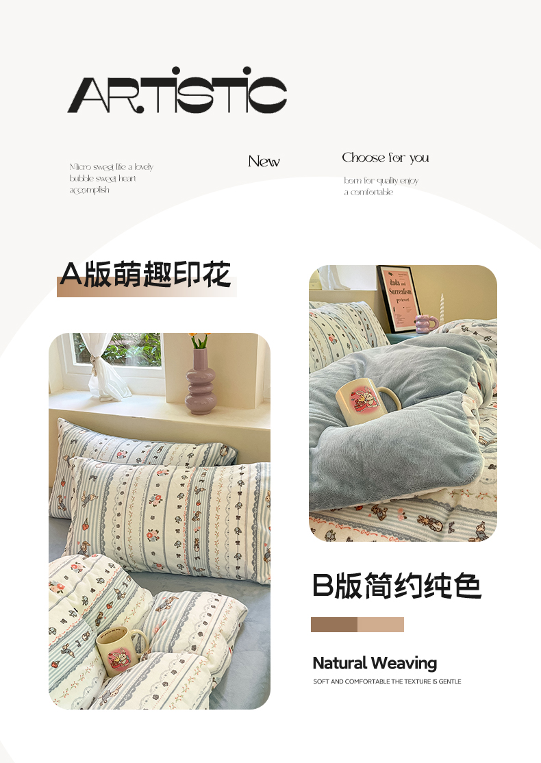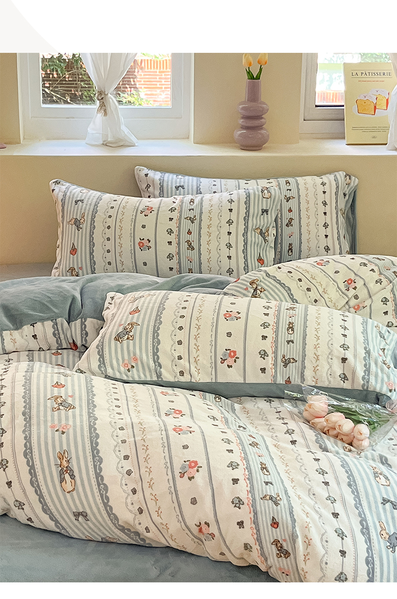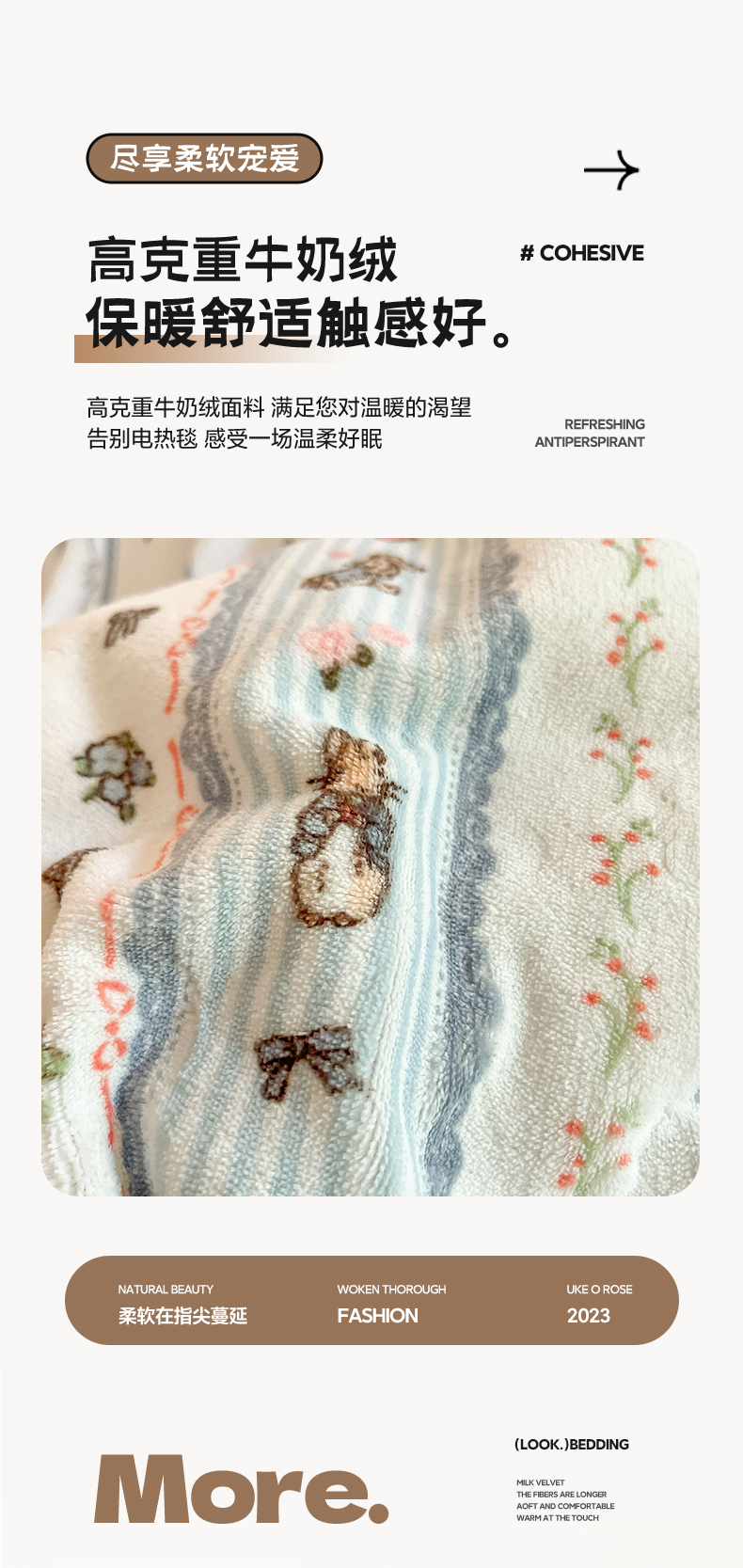 当前位置: 91家纺网 > 商品网购 > 床品套件 > 四件套 > 牛奶绒四件套 > 雅居纺家纺 2025新款高克重牛奶绒印花四件套 蓝色小兔