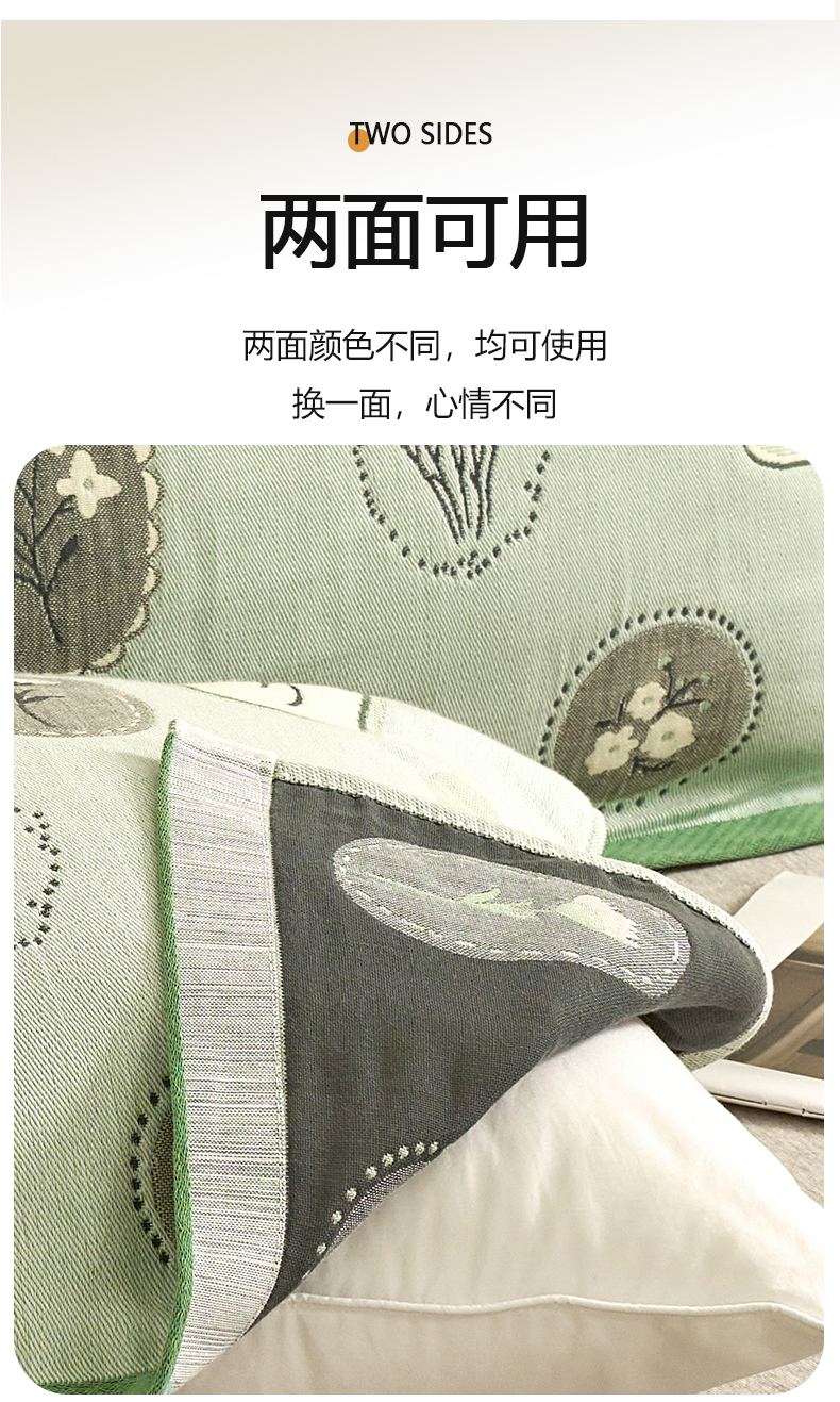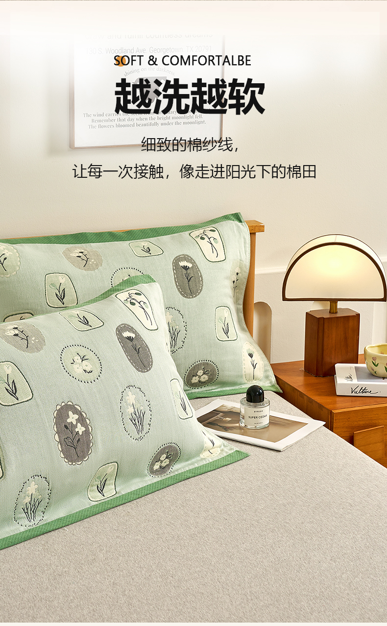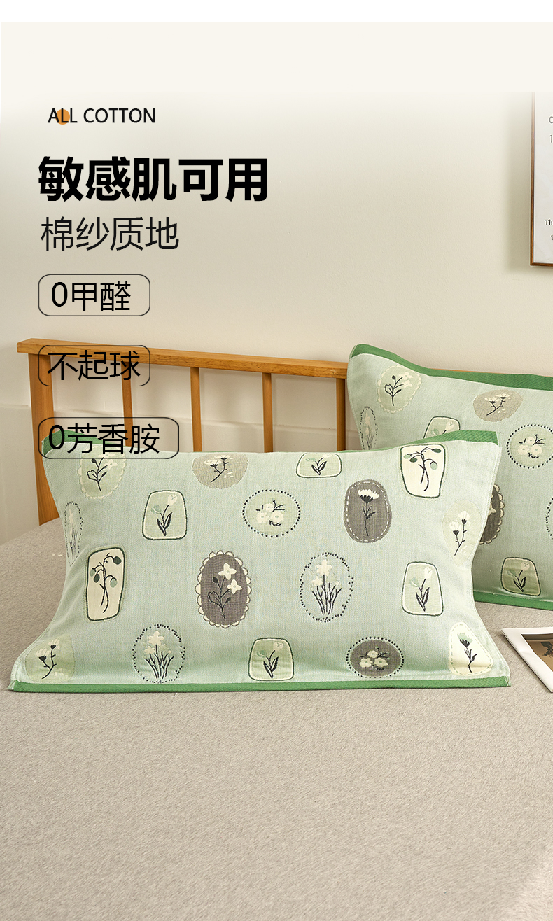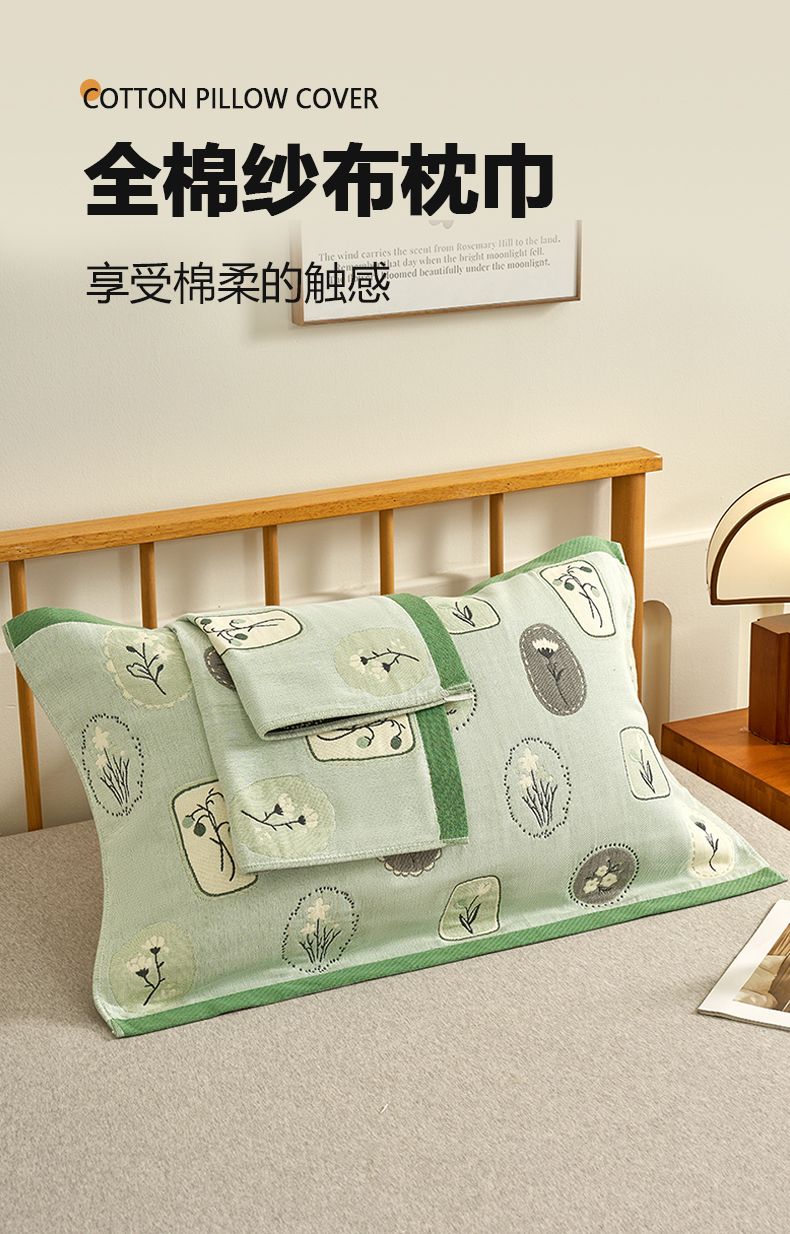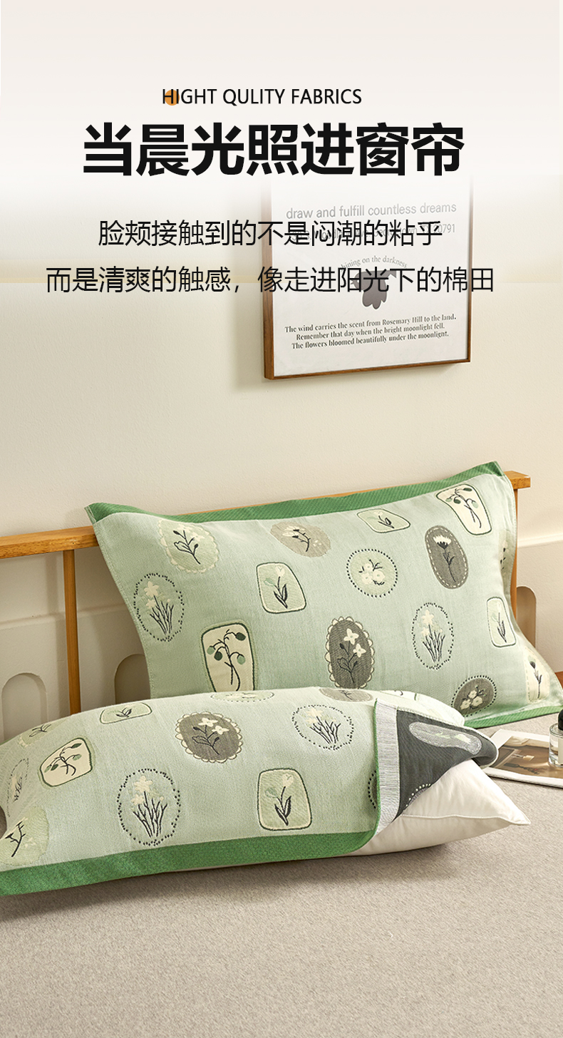 棠薇家纺 2025新款精梳棉六层纱单枕巾 枕巾单件 诗意绿