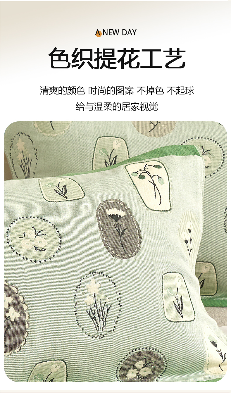 商品名称:棠薇家纺 2025新款精梳棉六层纱单枕巾 枕巾单件 诗意绿