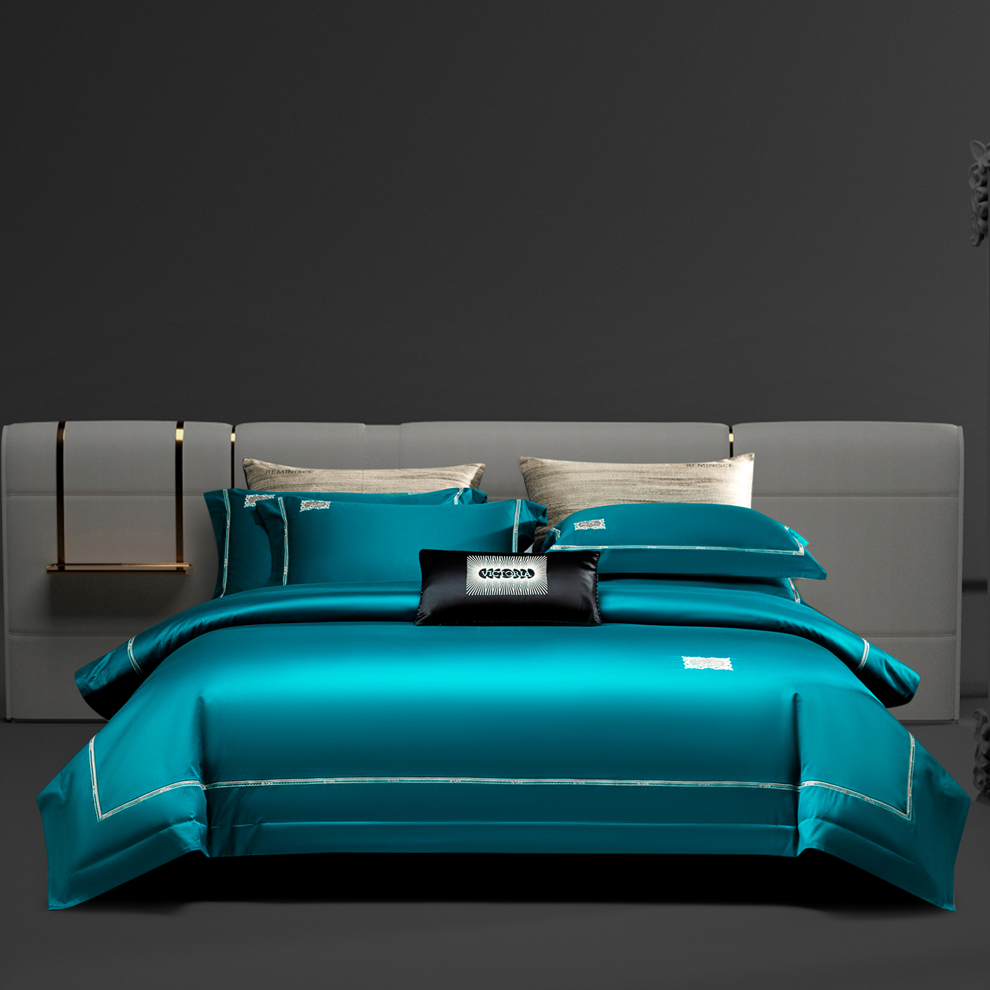 总玖玖爱家纺 纯棉100支贡缎长绒棉刺绣被套三件套四件套加大四件套,白色,高级灰,卡其,蓝灰,绿色,浅桔,深蓝,紫豆沙