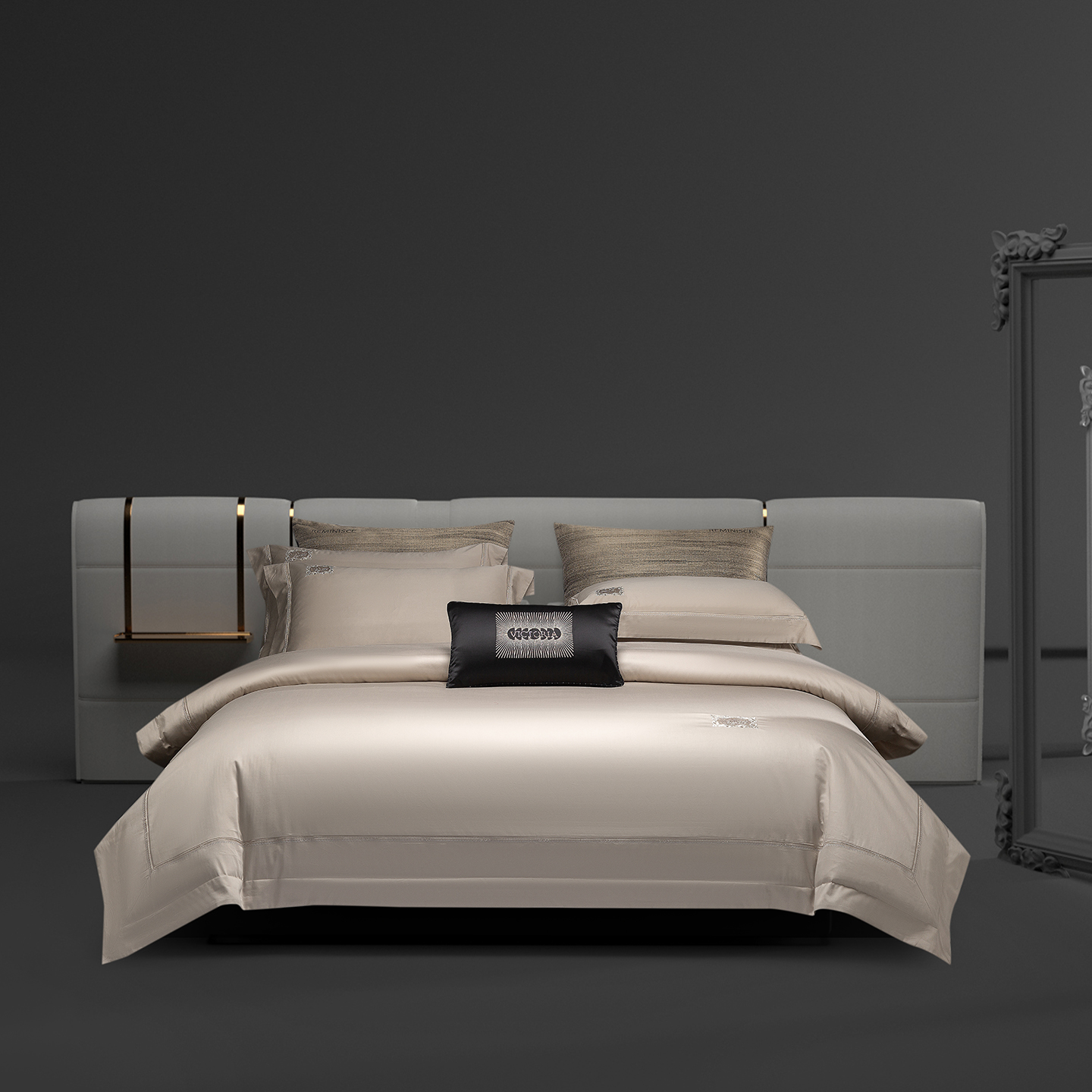 商品名称:玖玖爱家纺 2025新款180支植物甑棉罗卡芙刺绣系列四件套 亚麻灰