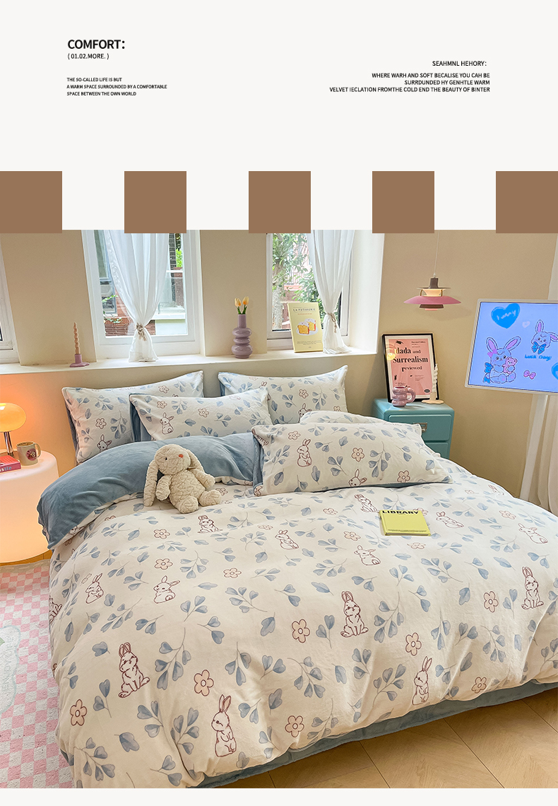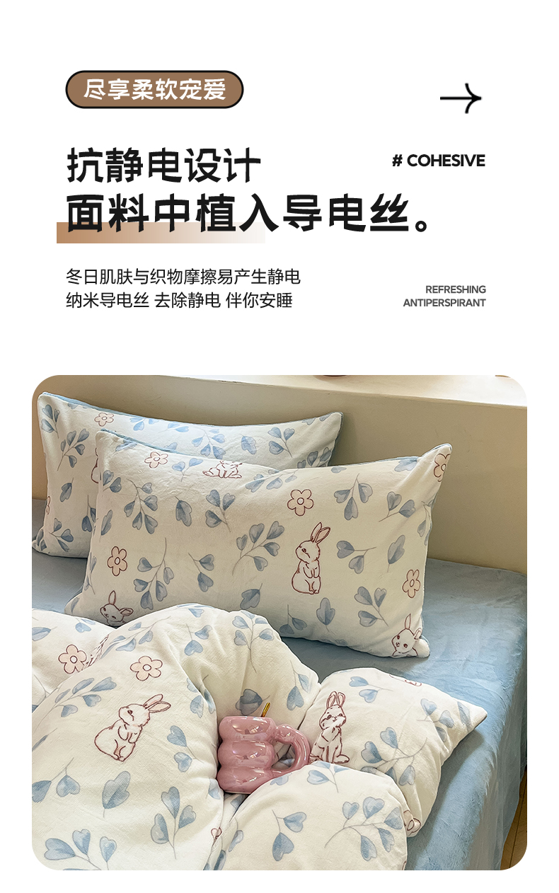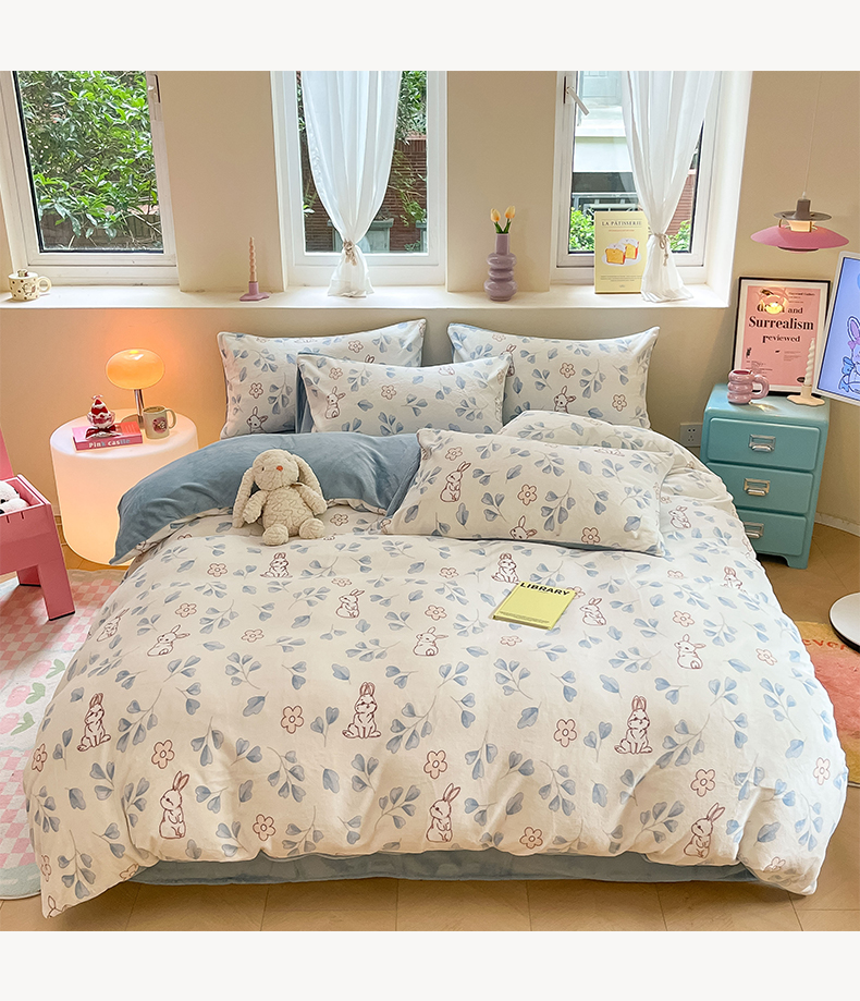 雅居纺家纺 2025新款高克重牛奶绒印花单被套 乖乖兔