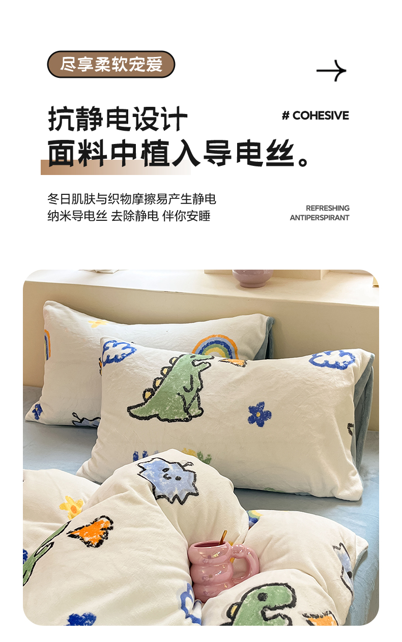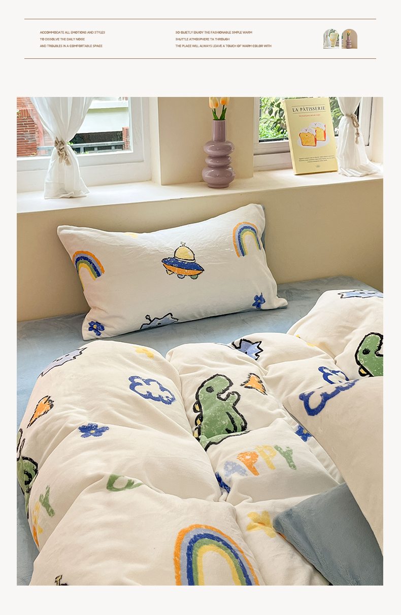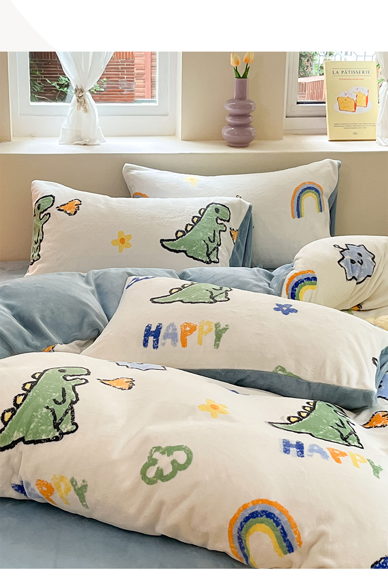 雅居纺家纺 2025新款高克重牛奶绒印花单被套 开心龙