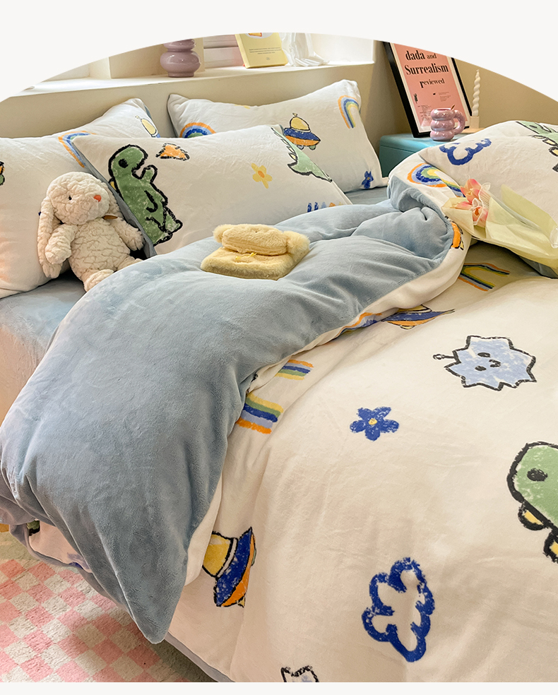 商品名称:雅居纺家纺 2025新款高克重牛奶绒印花单被套 开心龙