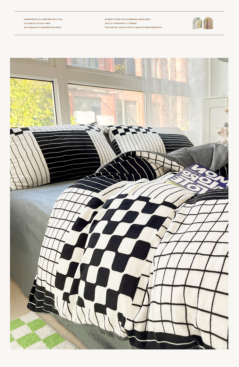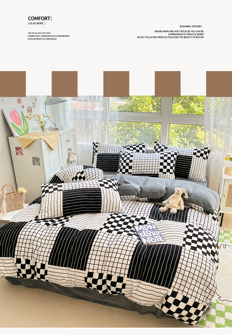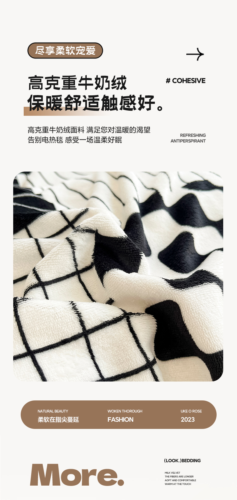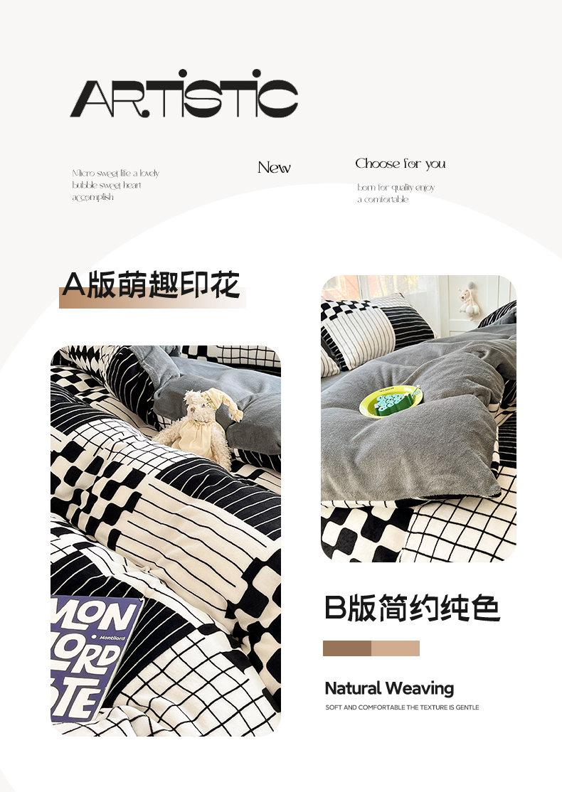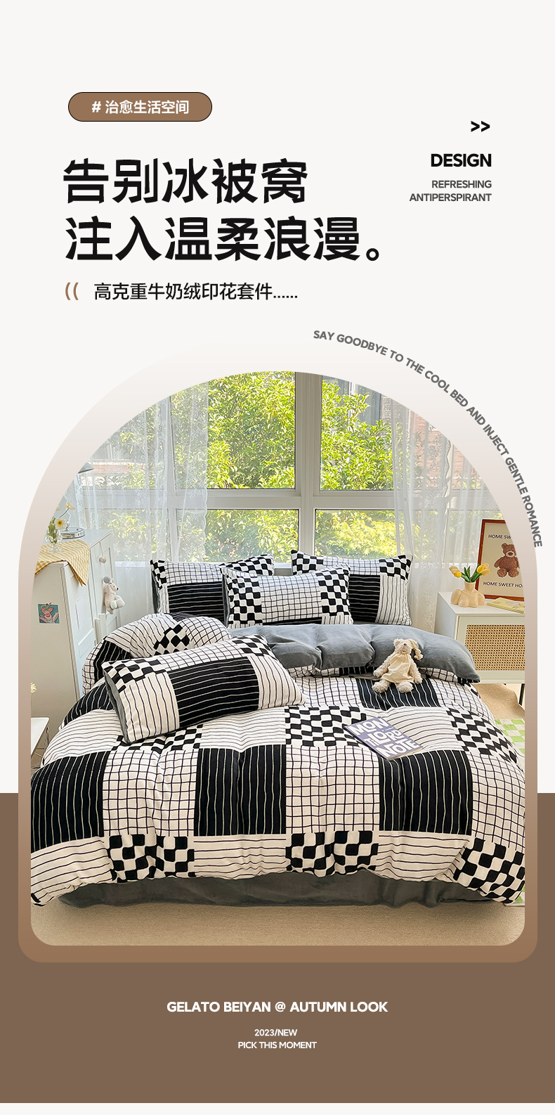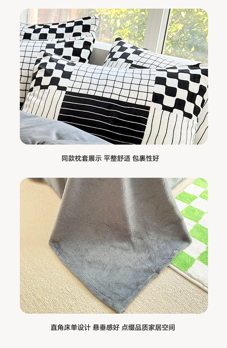 雅居纺家纺 2025新款高克重牛奶绒印花单被套 四宫格