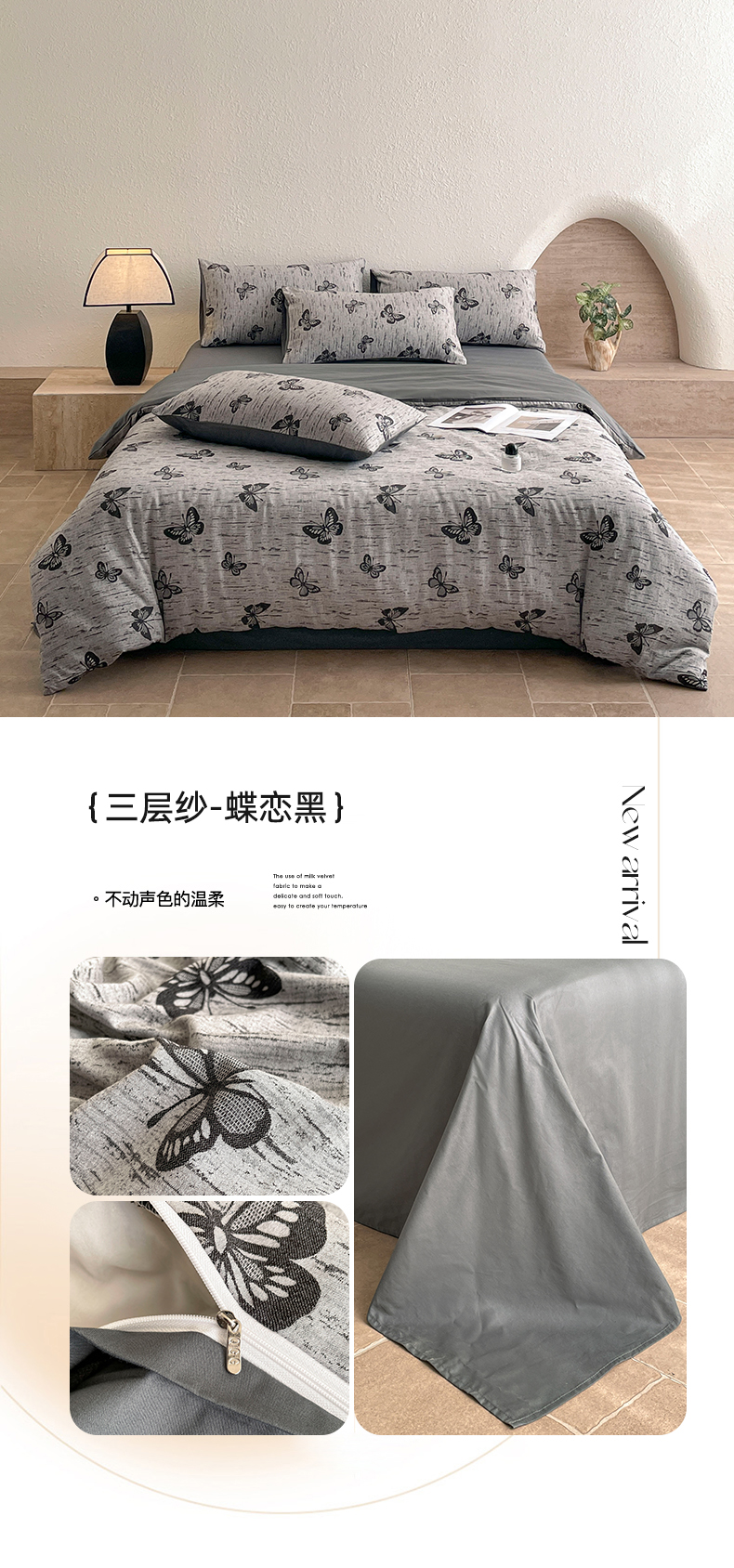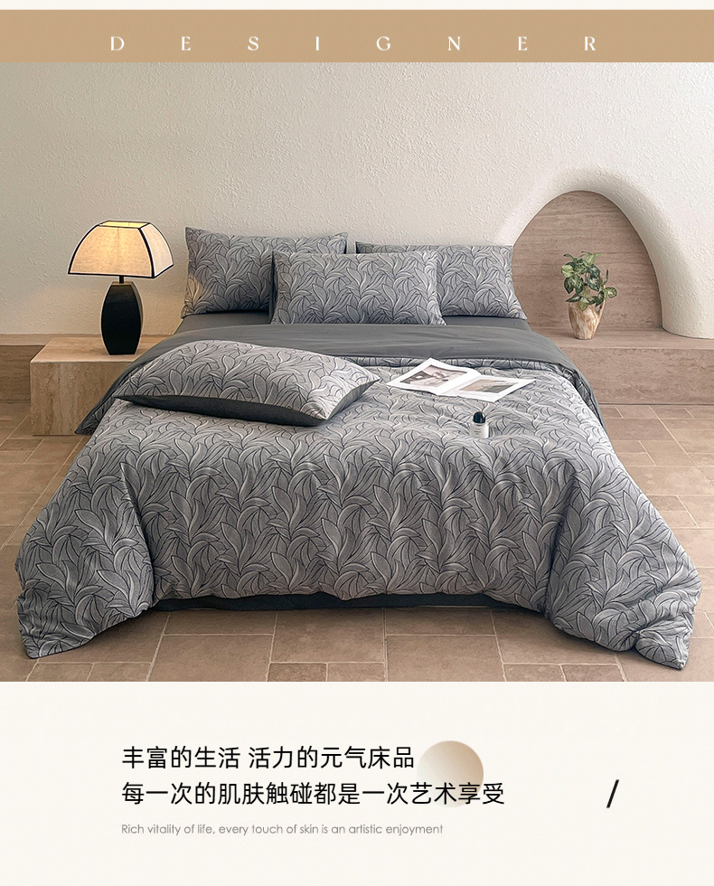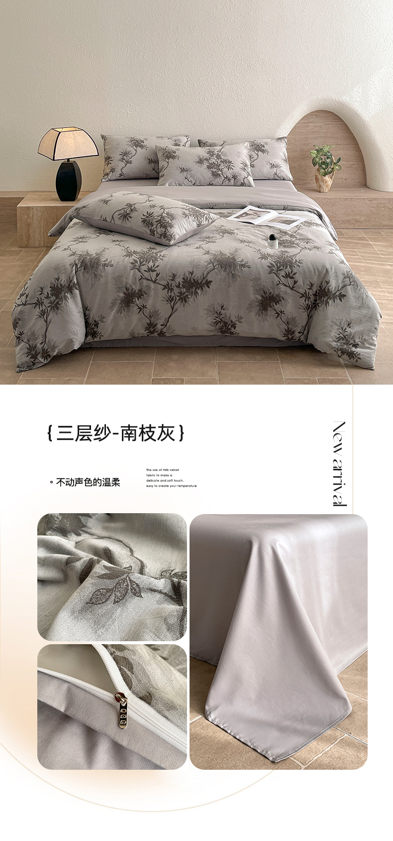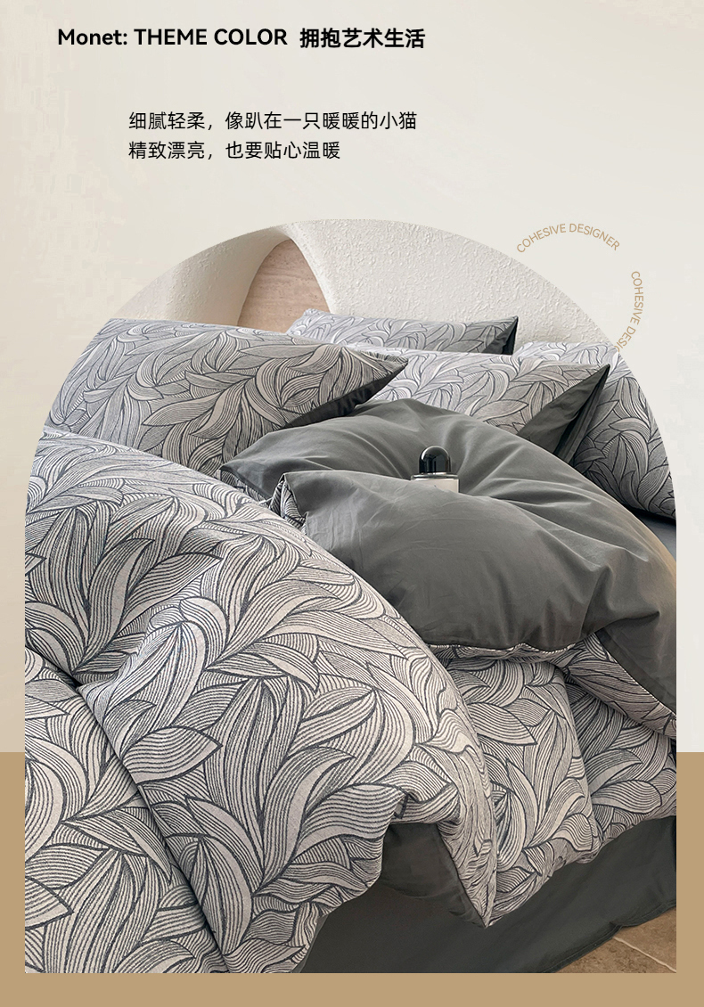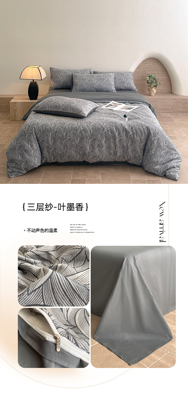 当前位置: 91家纺网 > 商品网购 > 床品套件 > 四件套 > 双层纱四件套 > 琪格格纺织 2025新款全棉纯棉双层纱提花四件套 双层纱-叶墨香
