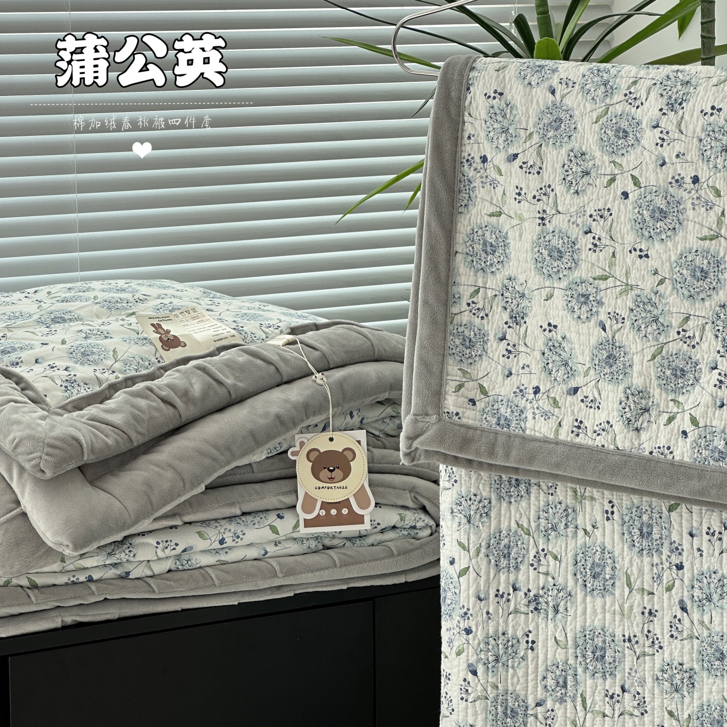 佰织鑫家居 2025新款棉加绒床盖款春秋被四件套 石榴花