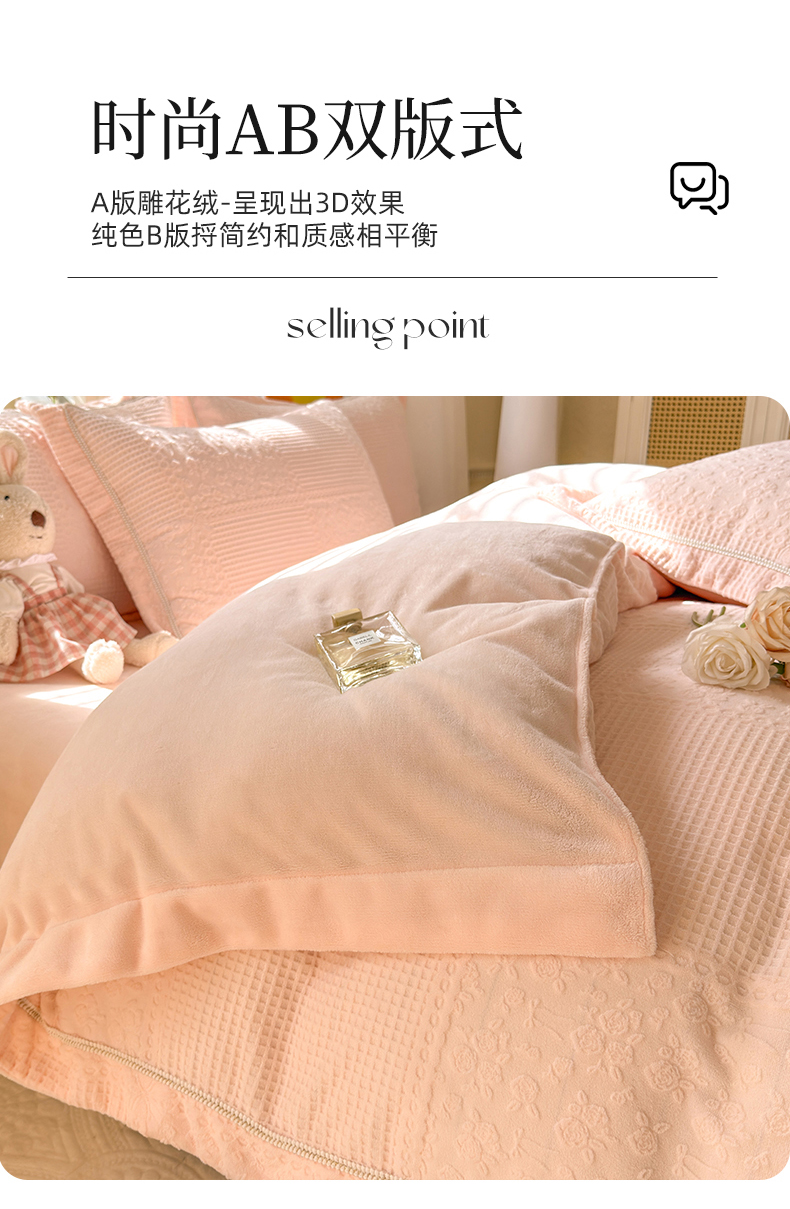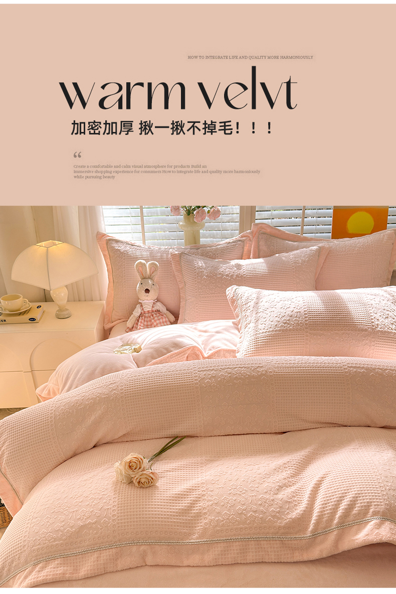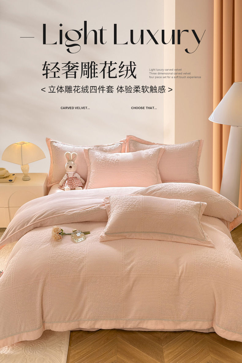 (总)艾唯希家纺 2025新款小兔毛全消光牛奶绒工艺四件套-绒樱桃系列,绒樱桃-粉,绒樱桃-驼