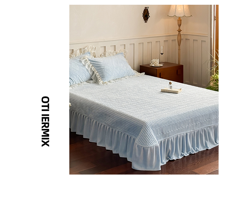 满座家居 2025新款爆款全消光牛奶绒雕花四件套蕾丝花边仙女款床盖四件套-云芙 云芙-皓月蓝