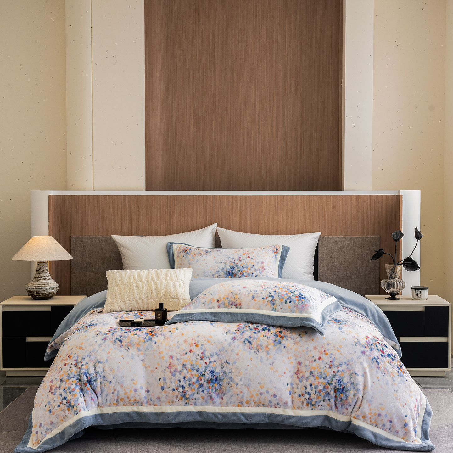 蓝梦 2025新款全消光数码印花牛奶绒系列四件套 花香