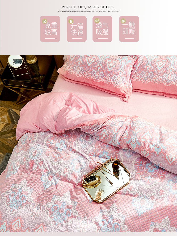 (总)梵克保罗 2025新款牛奶绒夹棉花边韩版印花单床盖-花妖,花妖
