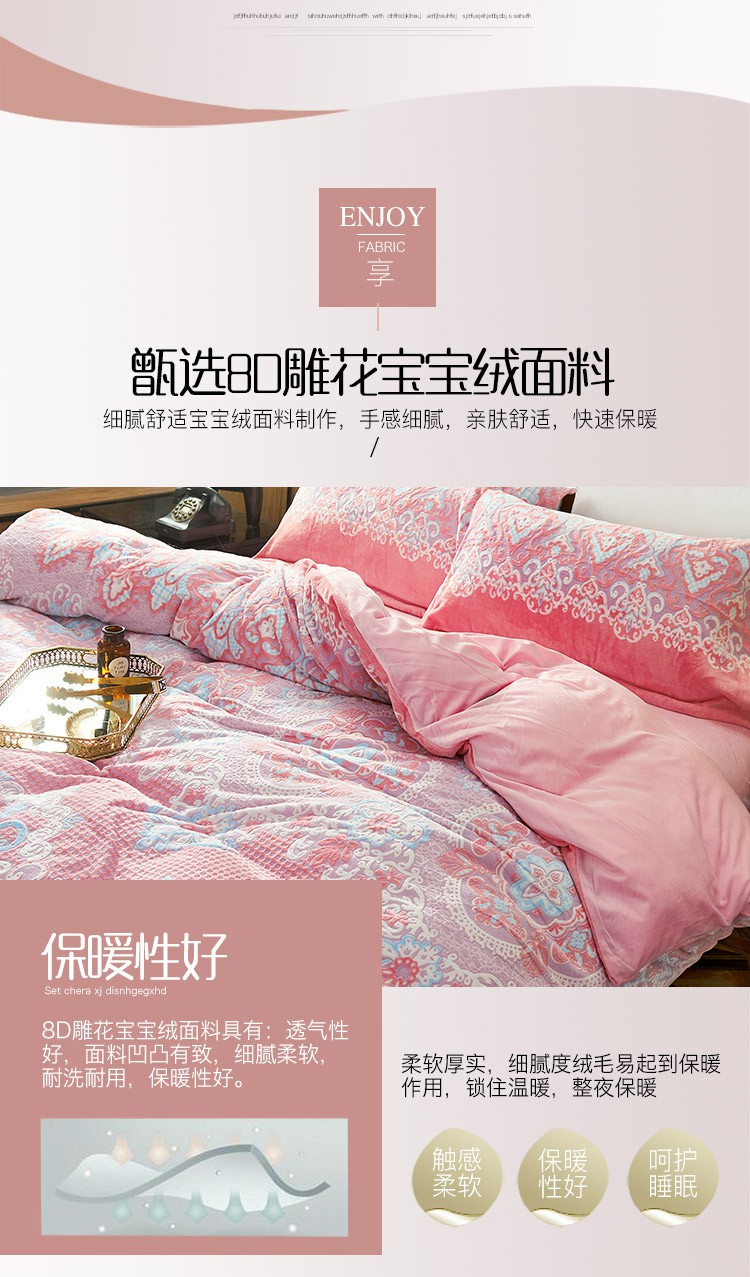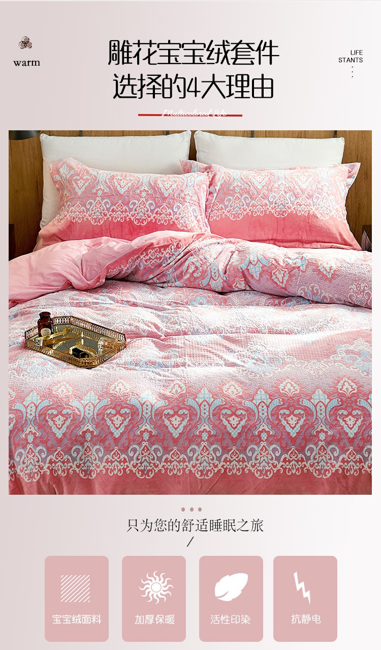 商品名称:(总)梵克保罗 2025新款秋冬6D水晶绒雕花绒牛奶绒法莱绒学生三件套