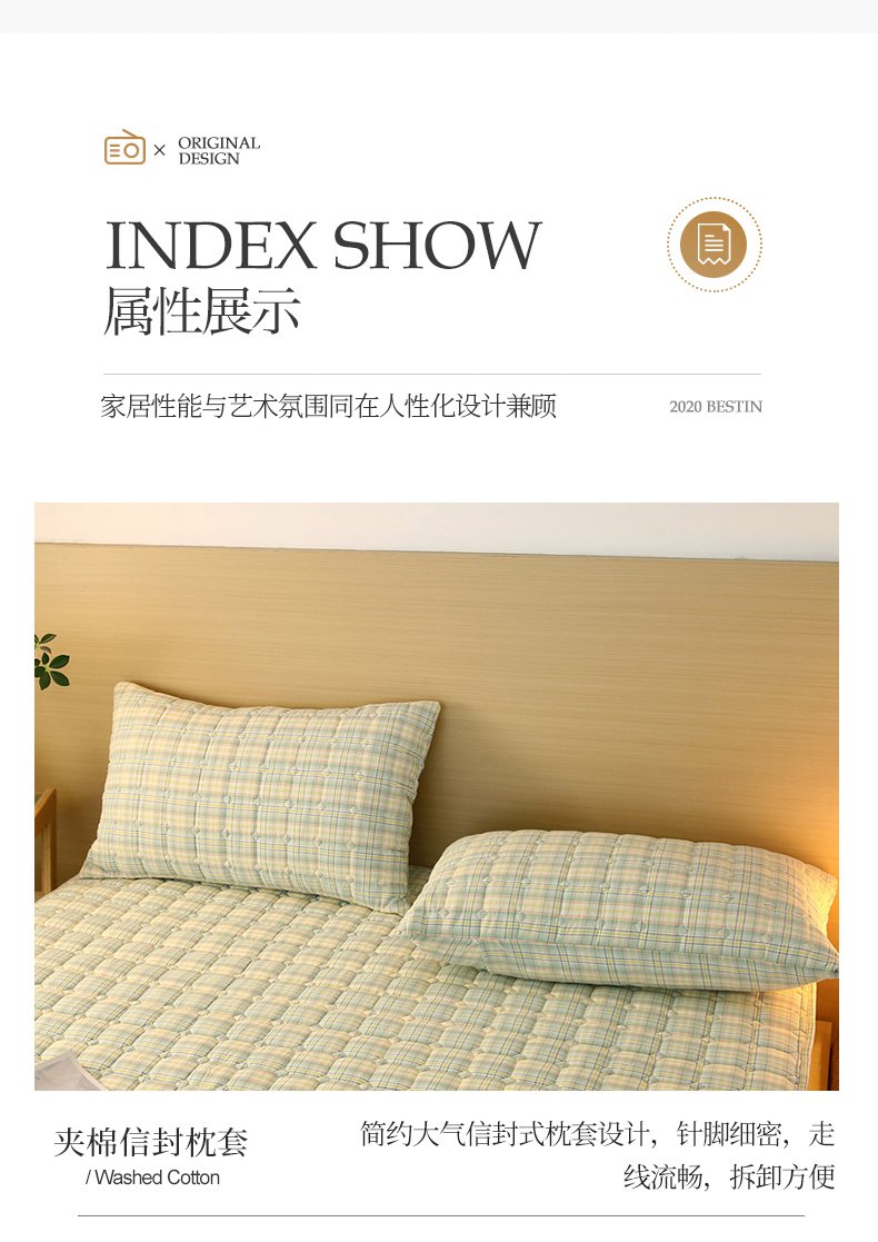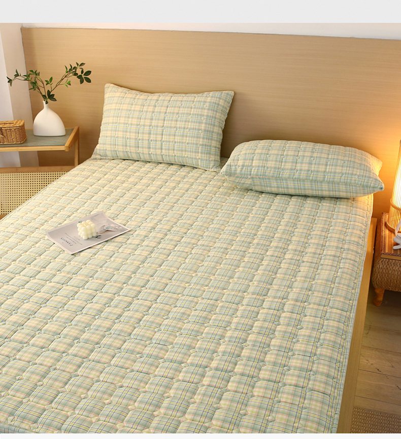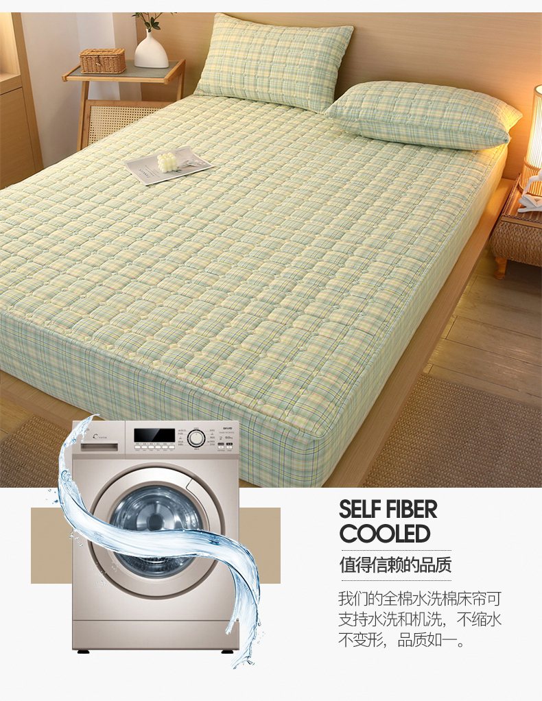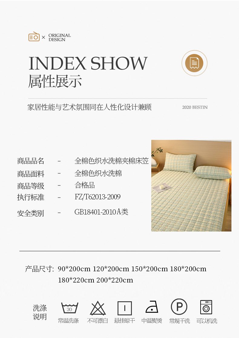 • 91家纺网 家纺一手货源 找家纺 梵克保罗 2025新款无印风全棉色织水洗棉夹棉床笠 凯里绿