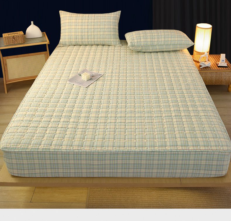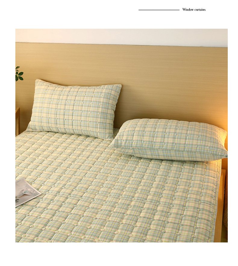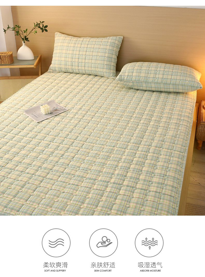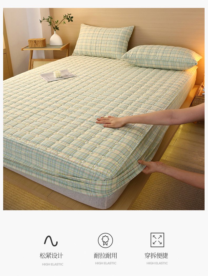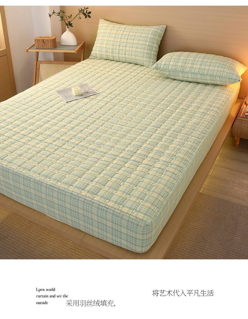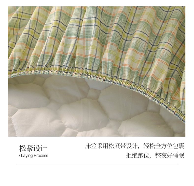 梵克保罗 2025新款无印风全棉色织水洗棉夹棉床笠 凯里绿