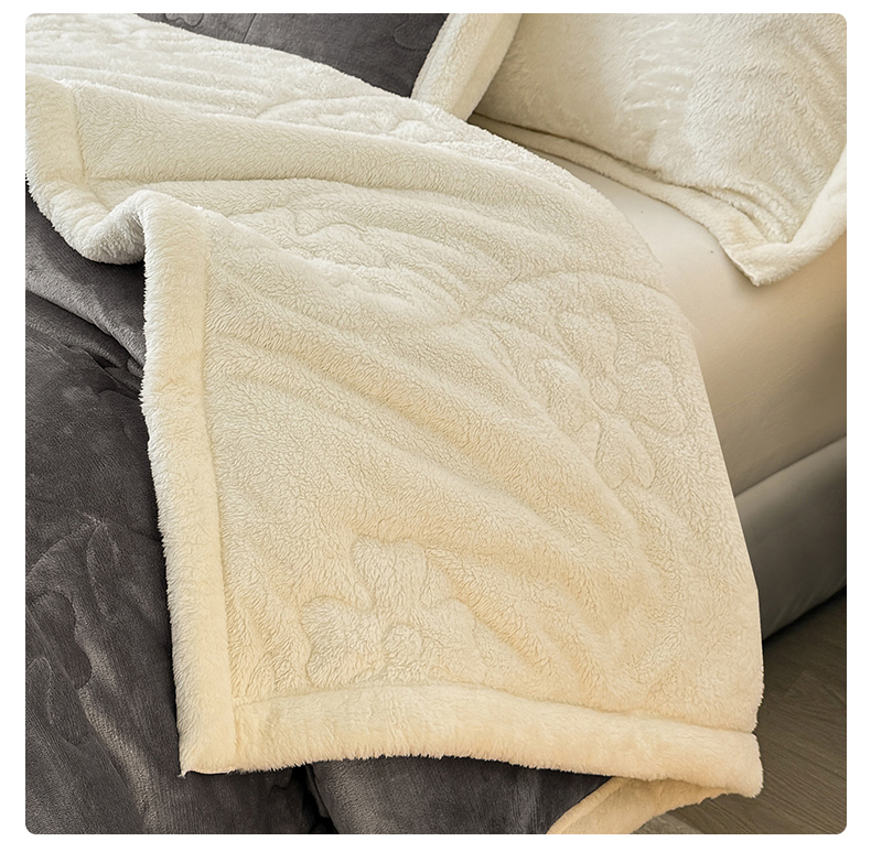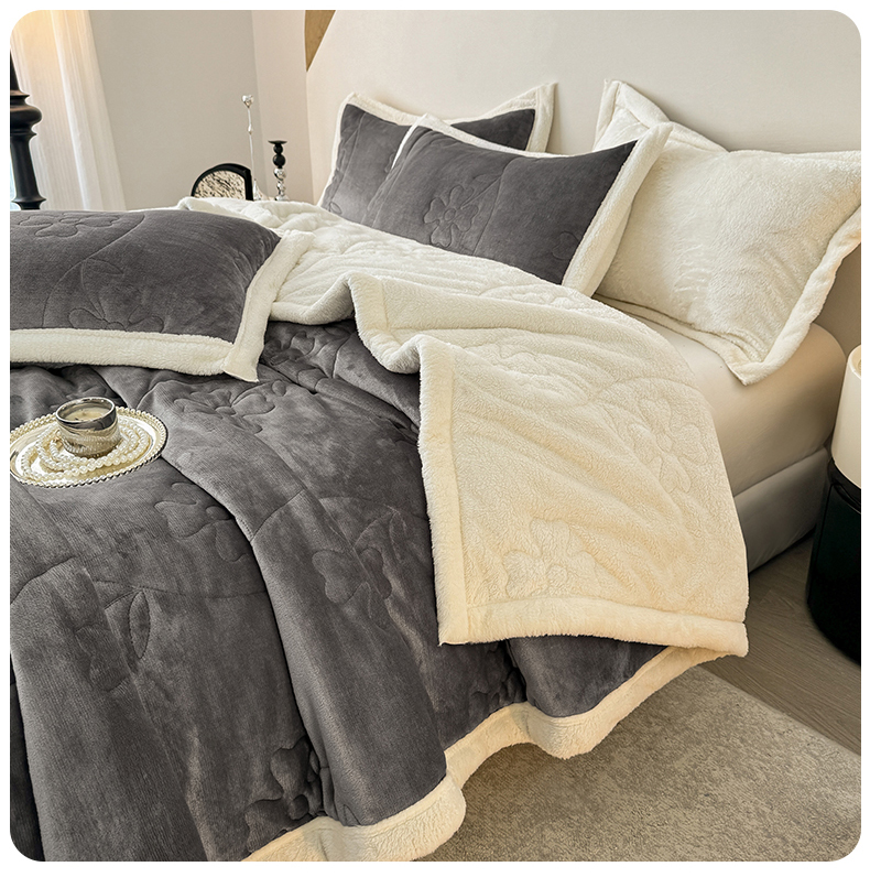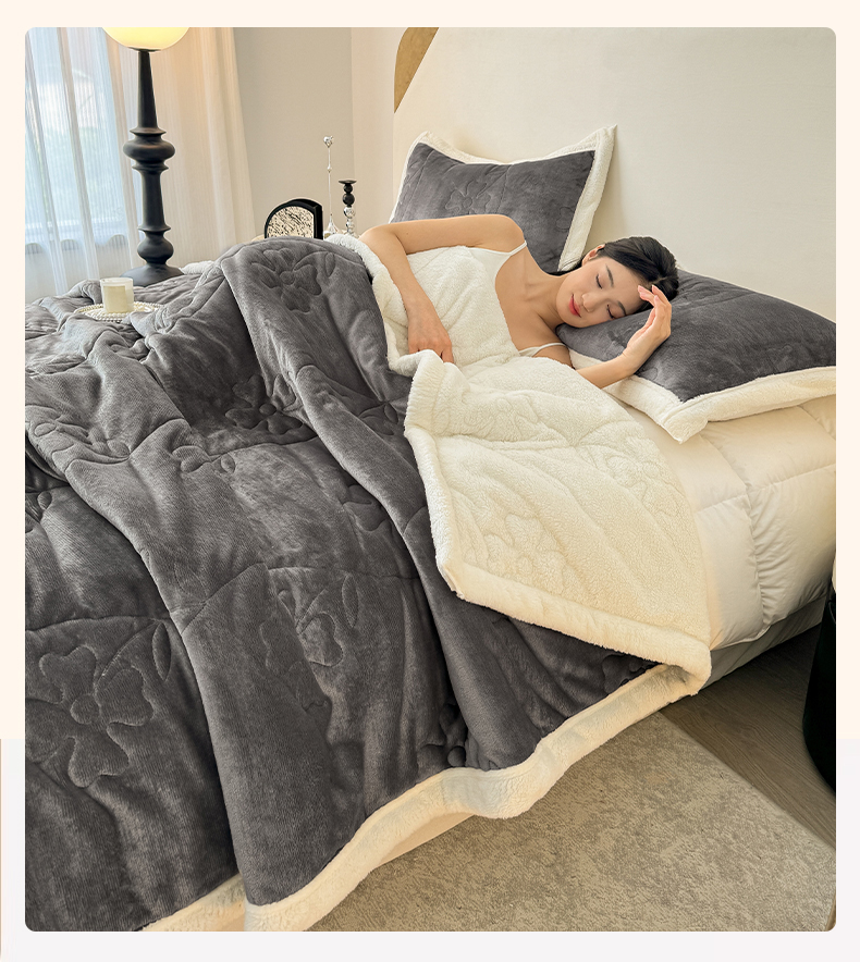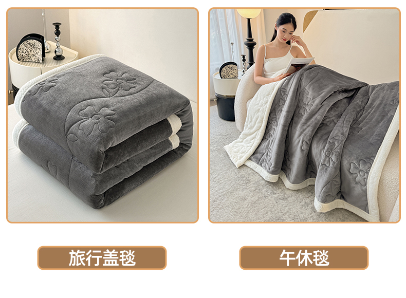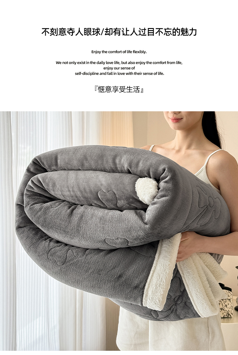 商品名称:青竹苑 2025新款A类婴儿绒北极绒羽丝棉三层夹棉盖毯多功能盖毯 浅灰
