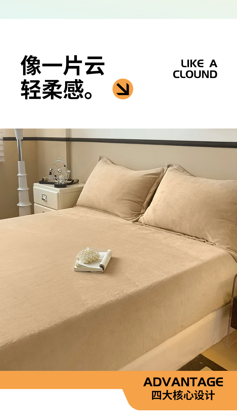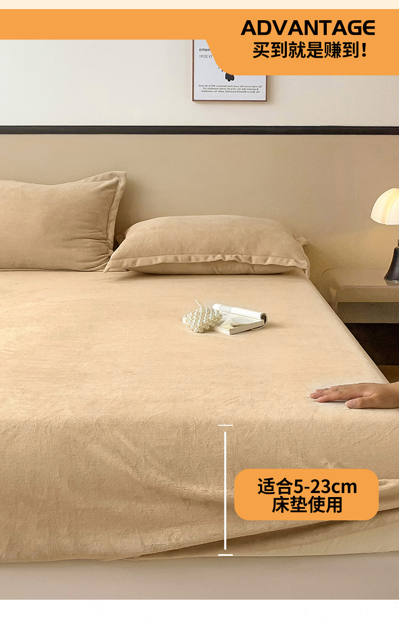 名兮家居 2025新款高克重加厚纯色牛奶绒床笠床单 素色-班尼咖