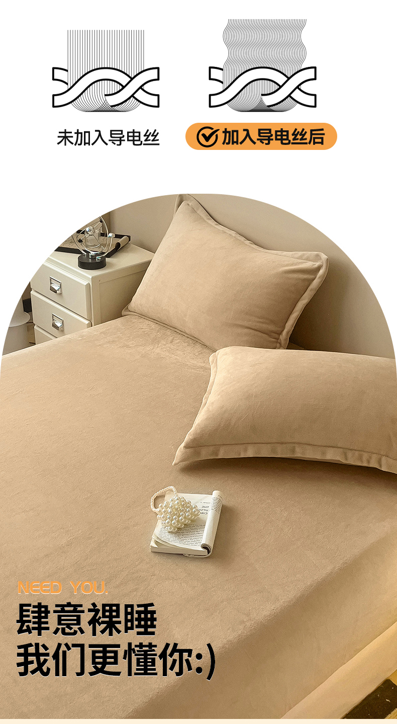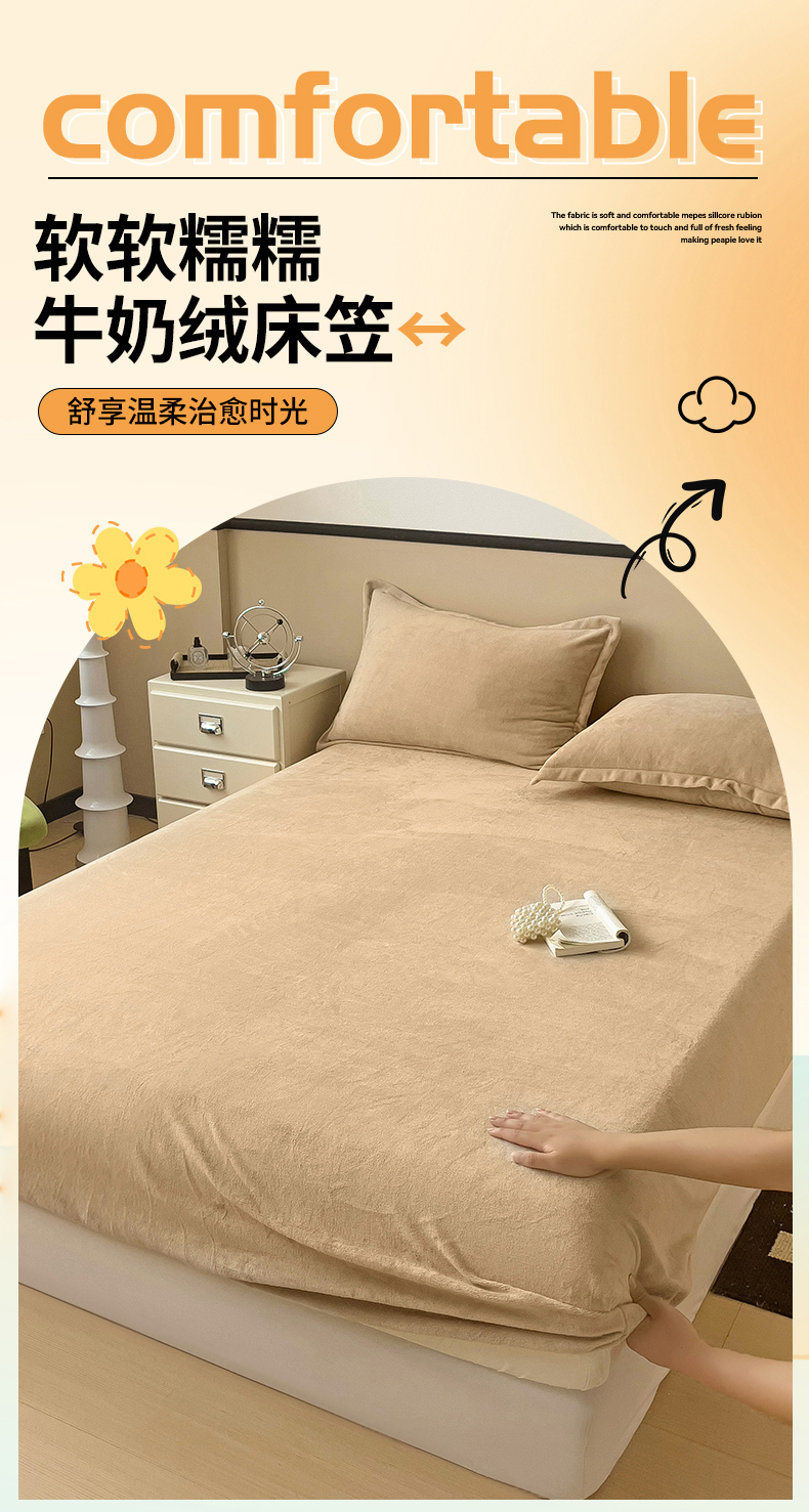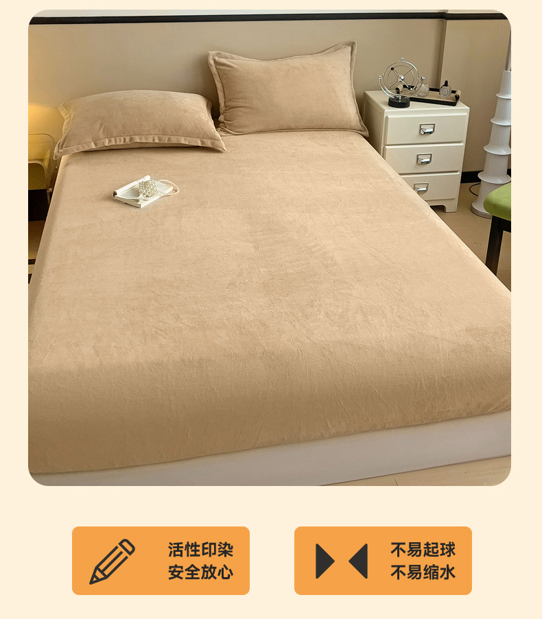 • 91家纺网 家纺一手货源 找家纺 名兮家居 2025新款高克重加厚纯色牛奶绒床笠床单 素色-班尼咖
