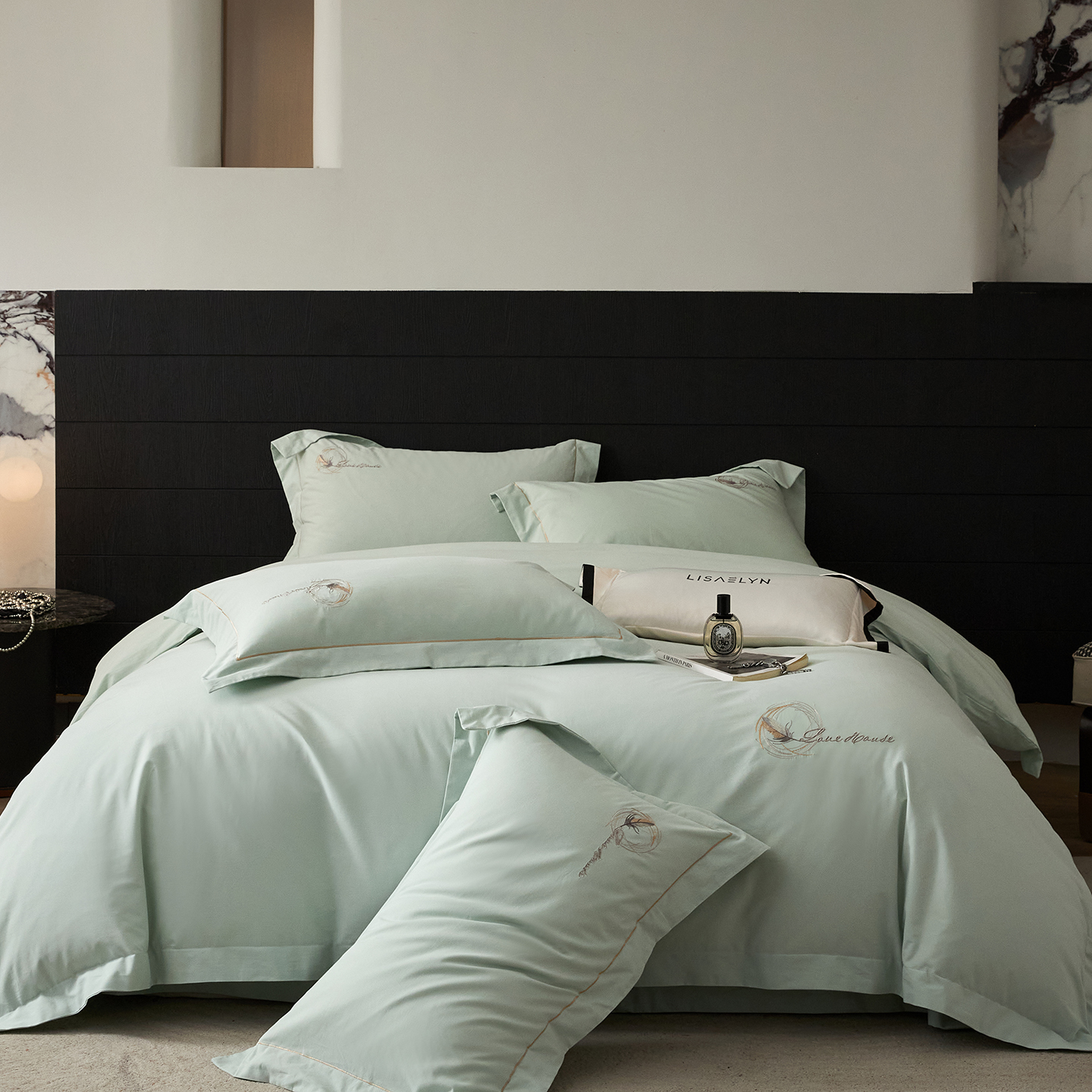 (总)琉宿家纺 2025新款全棉轻奢磨毛宽边工艺四件套,青羽(豆沙),青羽(粉玉),青羽(灰),青羽(蓝),青羽(绿)