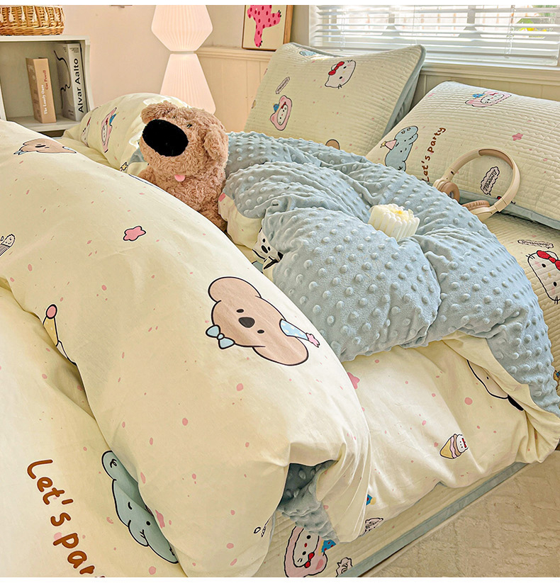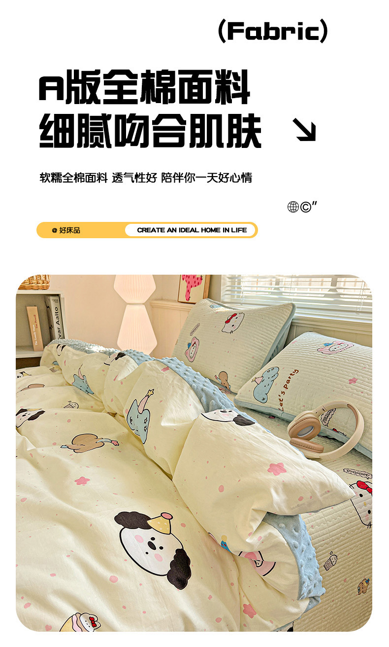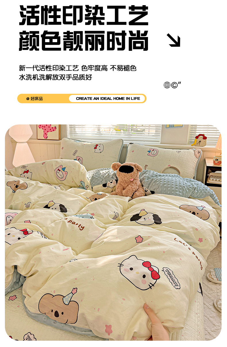(总)漫时光 2025新款正面纯棉反面宝宝绒印花夹棉砂洗床盖四件套,班尼熊,曲奇小狗,条纹熊,蕾丝小狗,汪汪曲,开心屋,小狗日记,花园兔,小伙伴,花间小兔,小熊猫,风铃小兔,猫咪派对