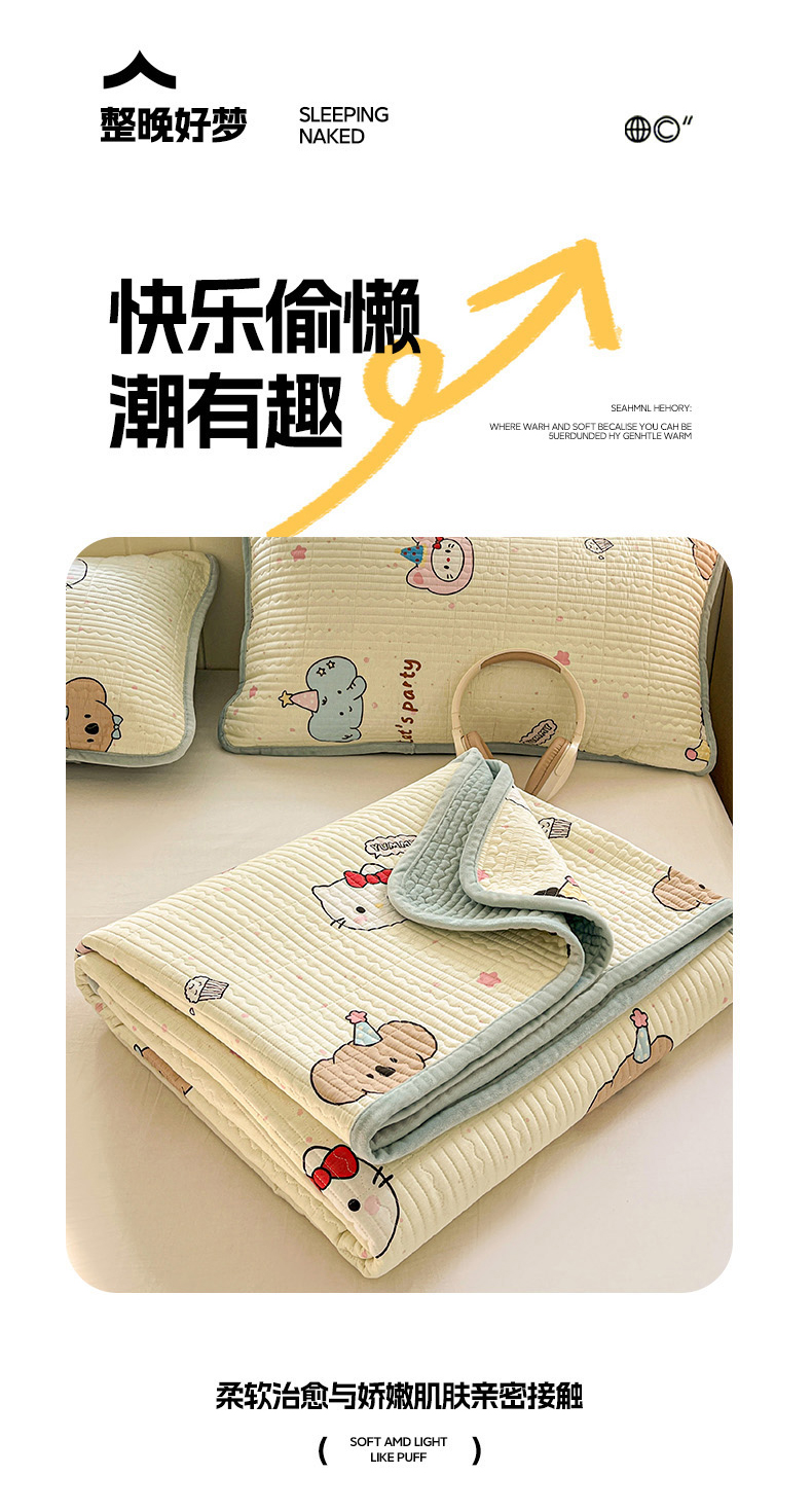 (总)漫时光 2025新款正面纯棉反面宝宝绒印花夹棉砂洗床盖三件套,班尼熊,风铃小兔,花间小兔,花园兔,开心屋,蕾丝小狗,猫咪派对,曲奇小狗,条纹熊,汪汪曲,小狗日记,小伙伴,小熊猫
