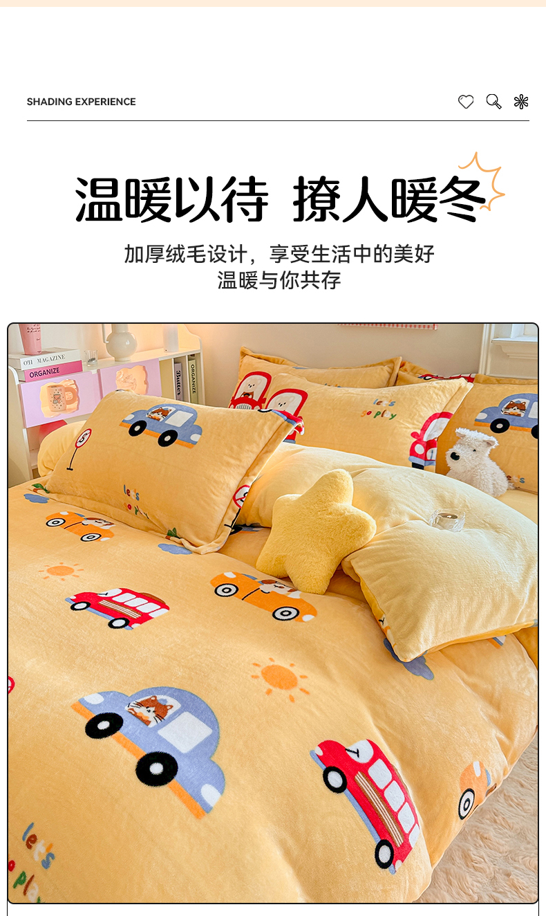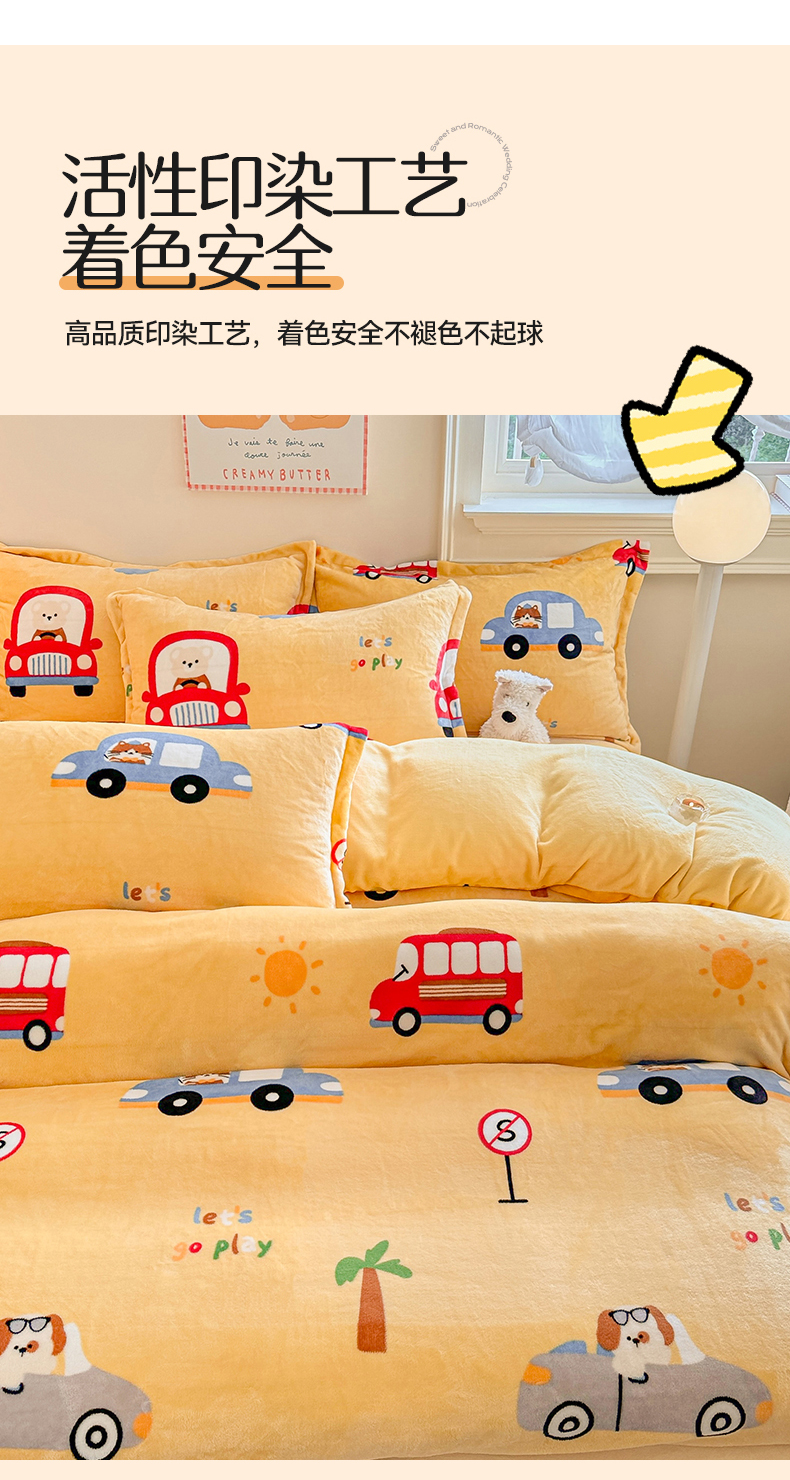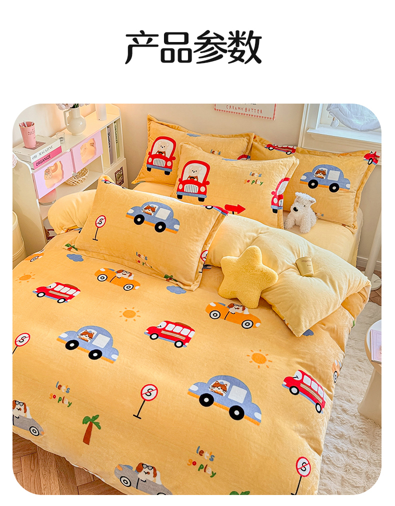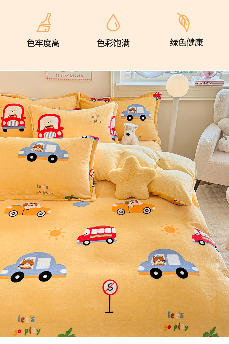 名兮家居 2025秋冬新款加厚高克重牛奶绒单被套 汽车派对