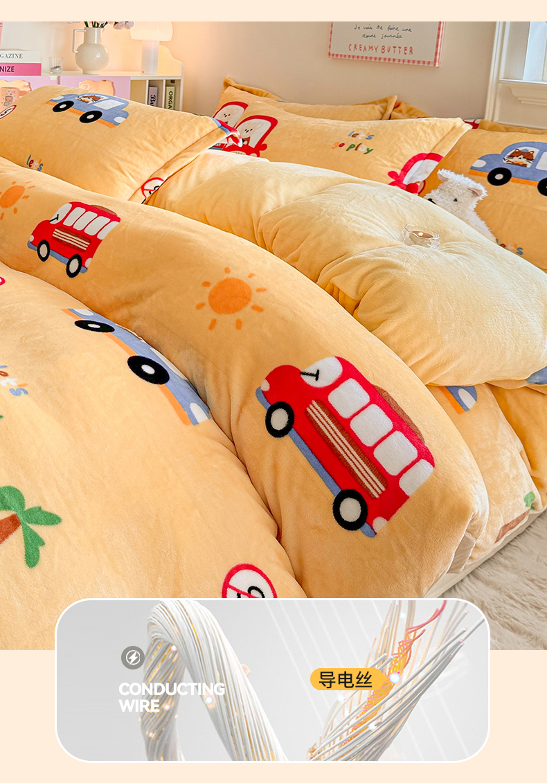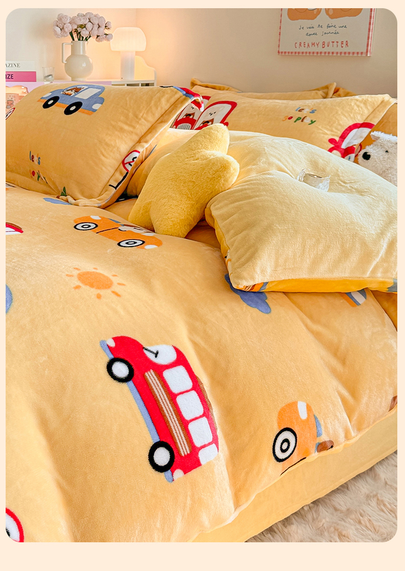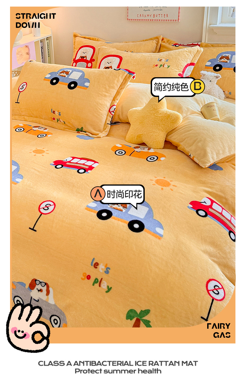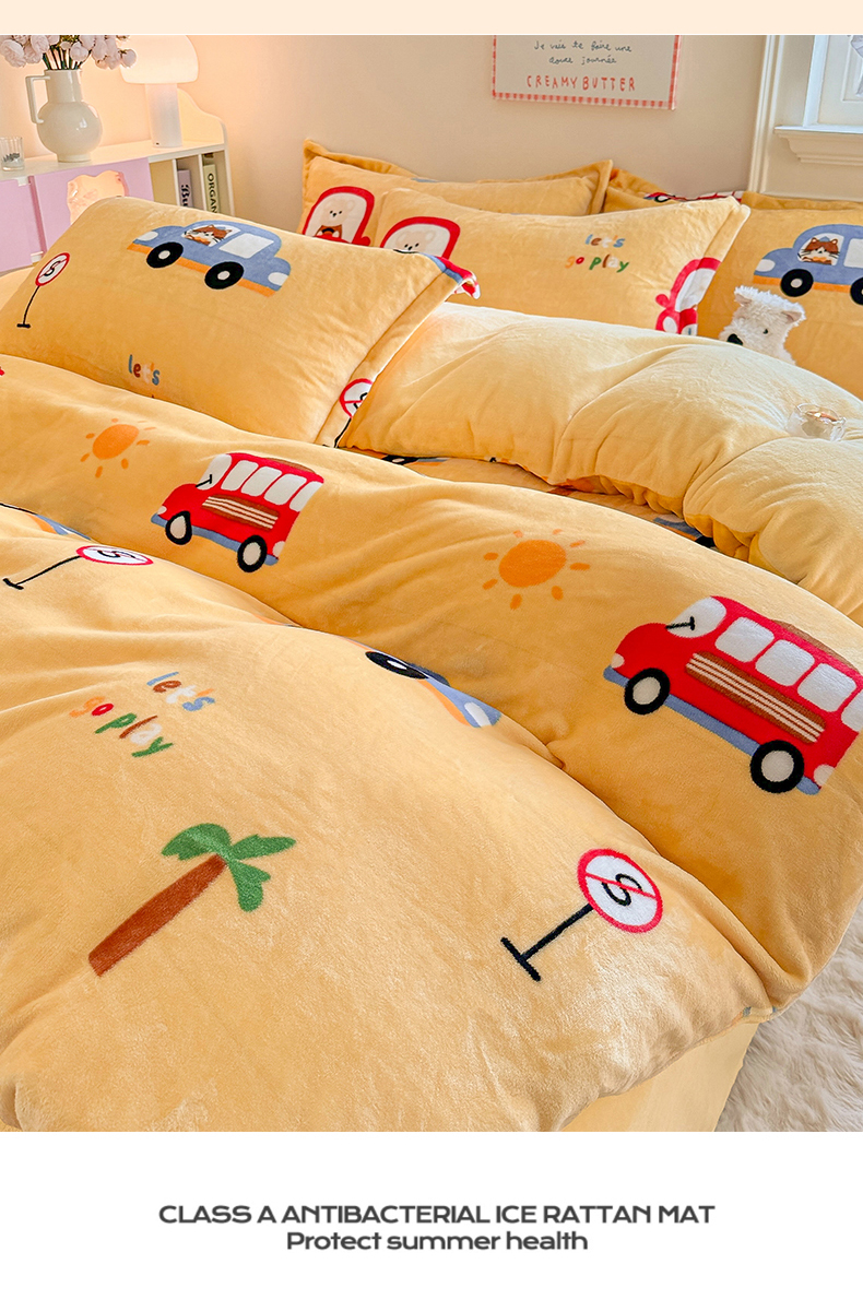 名兮家居 2025秋冬新款加厚高克重牛奶绒单被套 汽车派对