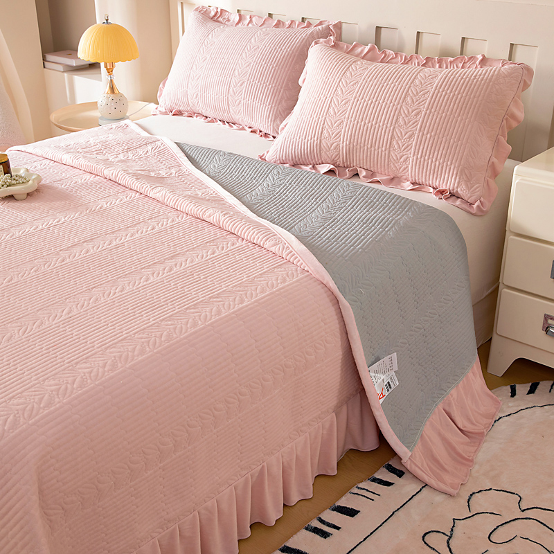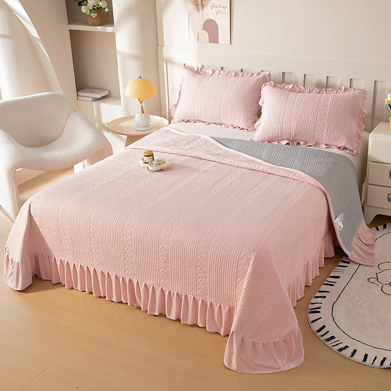 情煊家纺 2025新款纯色轻奢风亲肤床盖系列 淡粉