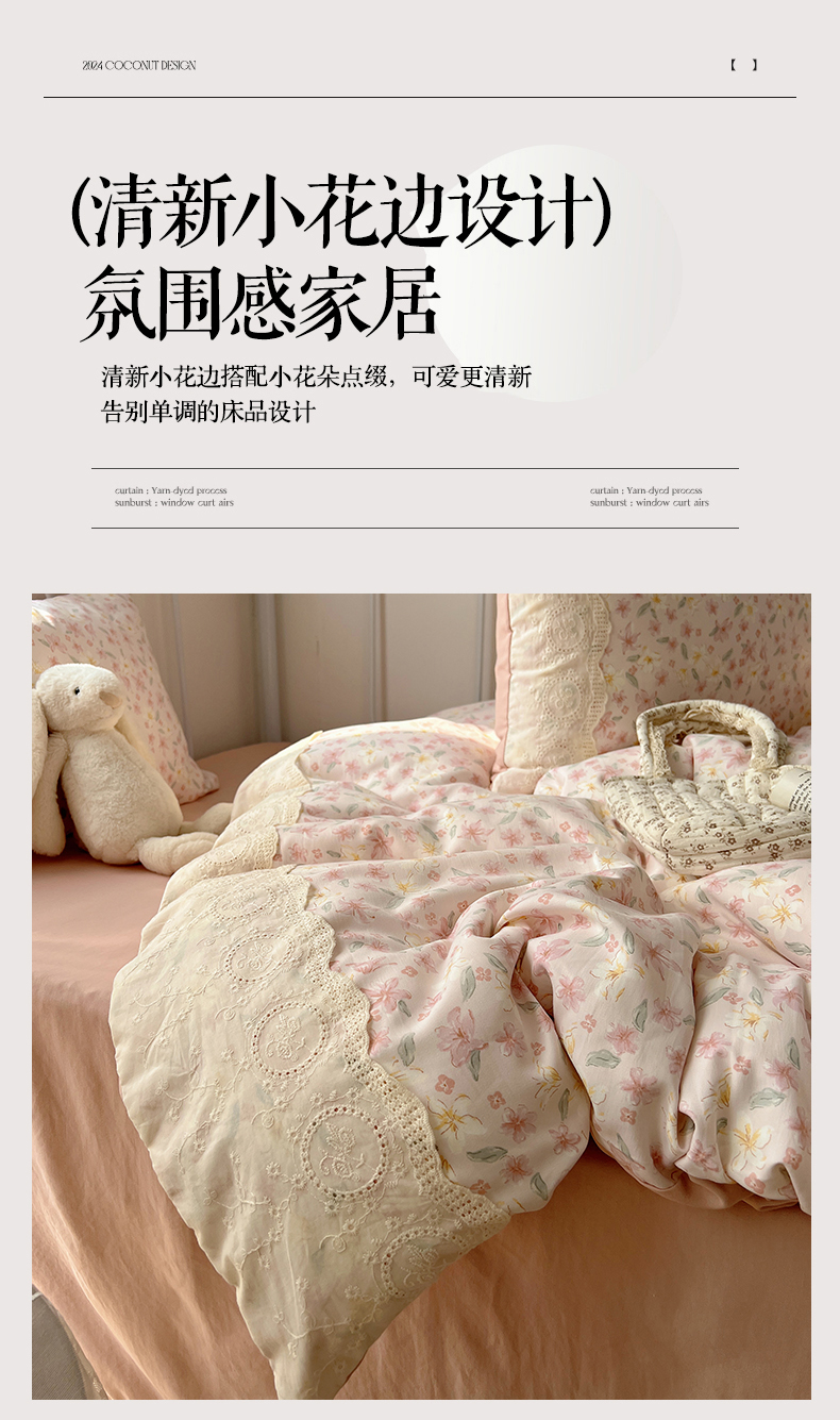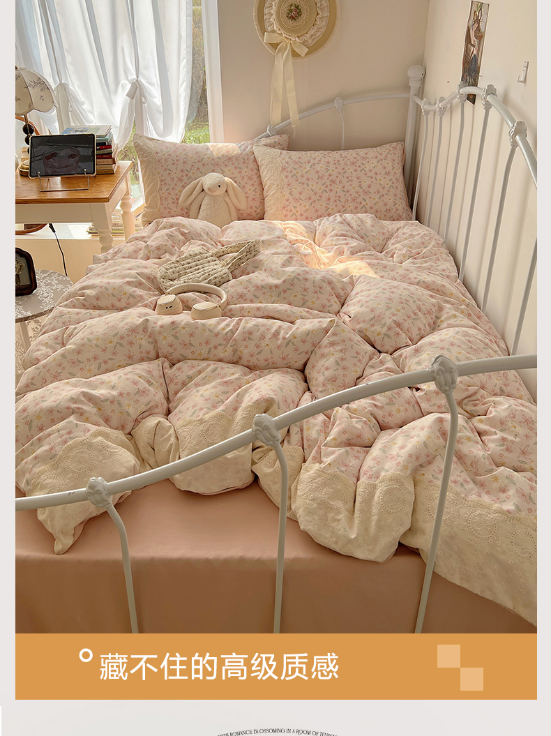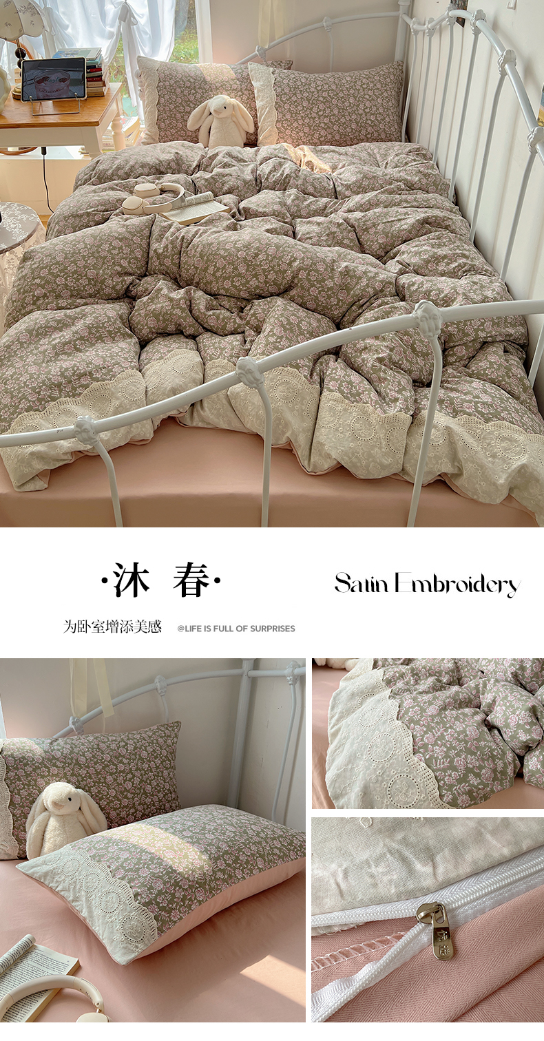 当前位置: 91家纺网 > 商品网购 > 床品套件 > 四件套 > 其它四件套 > 暖芯优选 2025秋冬新品韩国小清新有氧提花人字纹双层纱全棉蕾丝花边加厚四件套 盎然-大花边