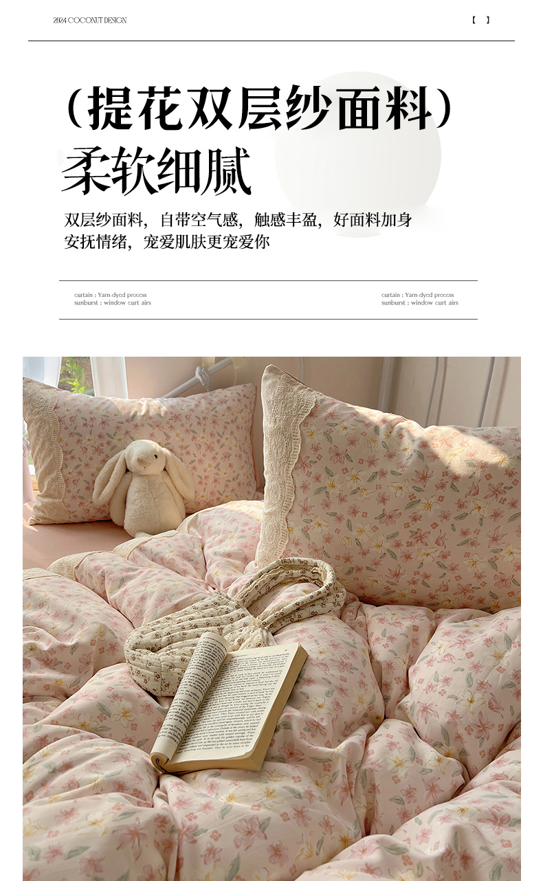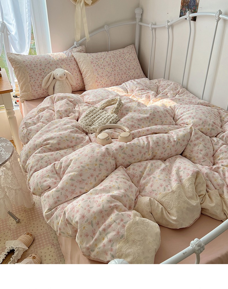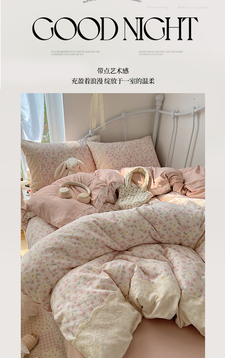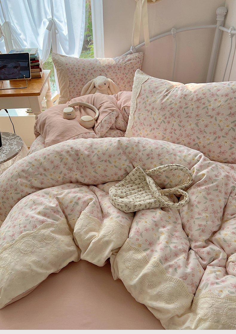 当前位置: 91家纺网 > 商品网购 > 床品套件 > 四件套 > 其它四件套 > 暖芯优选 2025秋冬新品韩国小清新有氧提花人字纹双层纱全棉蕾丝花边加厚四件套 盎然-大花边