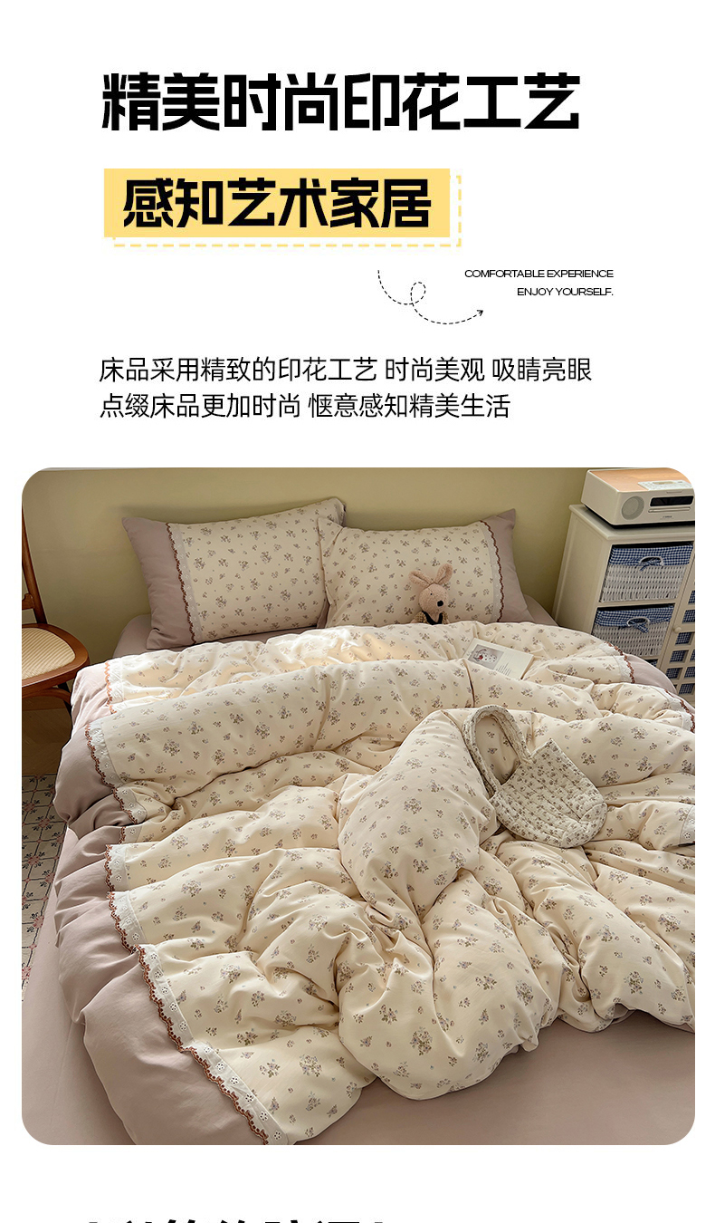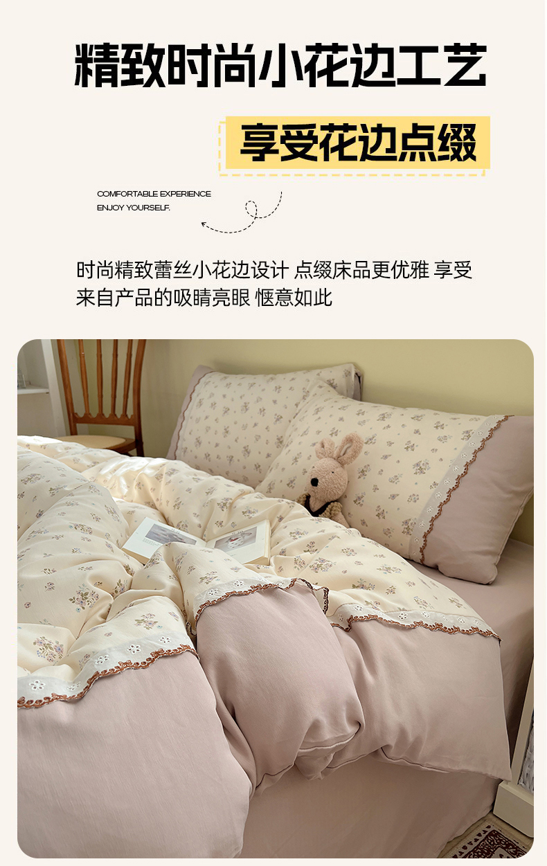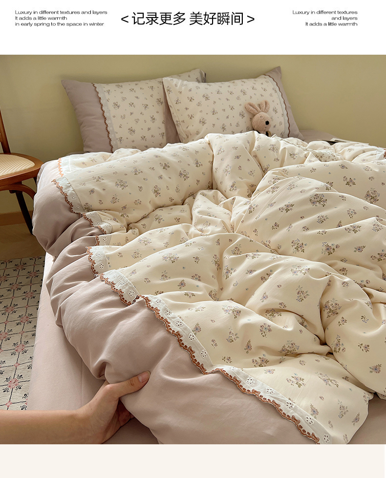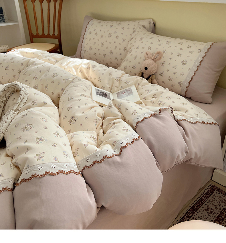 当前位置: 91家纺网 > 商品网购 > 床品套件 > 四件套 > 其它四件套 > 暖芯优选 2025秋冬新品韩国小清新有氧提花人字纹双层纱全棉蕾丝花边加厚四件套 栀子花信-小花边