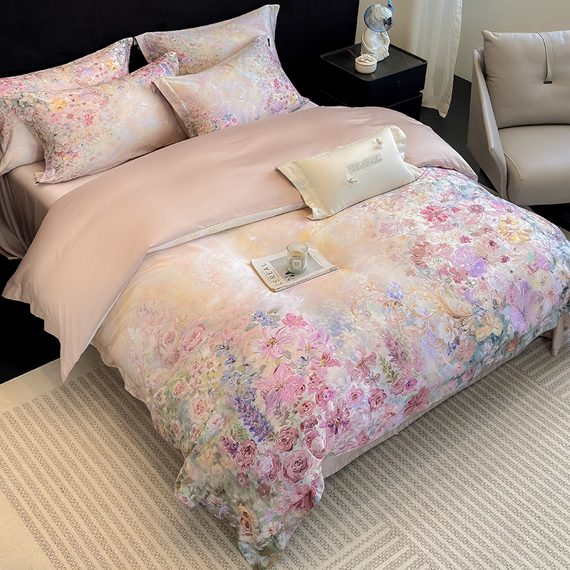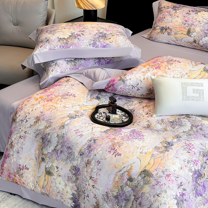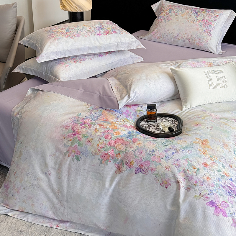 (总)东方名伶 2025新款莱赛尔兰精天丝棉数码印花宽边四件套,漫漫花开-紫,爱丁堡,漫漫花开-绿,莫奈花园紫,莫奈花园玉,波利花园紫,波利花园粉