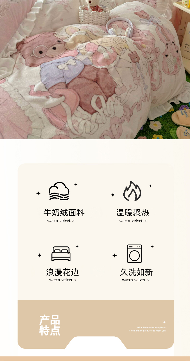 当前位置: 91家纺网 > 商品网购 > 床品套件 > 四件套 > 牛奶绒四件套 > 希诺家居 2025新款牛奶绒花边原创专版洛丽塔风少女心萝莉风大版牛奶绒四件套被套 牛奶绒-告白序曲